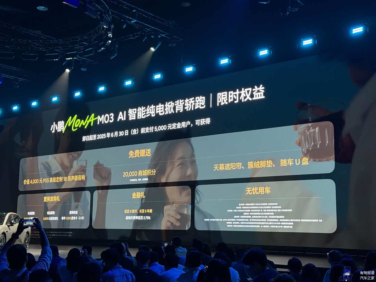 发布会期间,官方推出了限时权益,即日起至2025年6月30日(含)前支付5000元定金用户,可获得免费赠送(可兑换充电、保养、商城精品)价值4000元PSS高级定制18扬声器音响;20000商城积分;天幕遮阳帘、簇绒脚垫、随车U盘;置换复购礼:本品置换5000元尾款减免、他品置换3000元尾款减免、复购权益每年1500度电卡(4年);金融礼:低至0首付,长至5年期基础年费率低至2.79%;此外还有无忧用车礼。