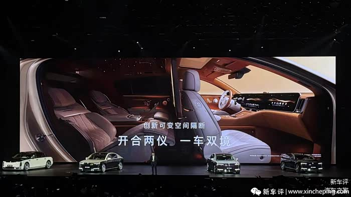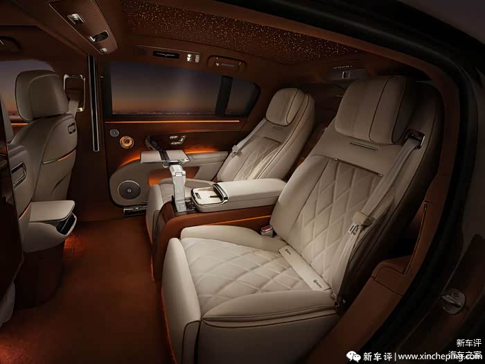 车辆的行政中岛台设计集成了双享航空小桌板、双温控车载冰箱、指纹密码箱、双冷暖杯托等实用配置。小桌板拥有多种折叠形态,并集成可折叠化妆镜;车载冰箱支持-6°C至10°C制冷和35°C至50°C制热,内置紫外线杀菌功能;指纹密码箱位于后排中央,可通过后排中岛台指纹模块解锁,锁车时自动闭锁,安全便捷。
