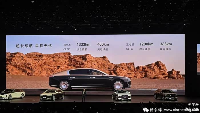 动力系统方面,尊界S800提供纯电与增程两种动力选择。纯电版搭载双电机系统,前/后电机最大功率分别为160/230kW,系统总功率390kW;增程版提供双电机和三电机两种配置,三电机版前电机最大功率160kW,两台后置电机最大功率均为273.5kW,系统总功率高达635kW。增程版搭载1.5T高效发动机,最大功率115kW,双电机版综合油耗仅为0.09L/100km,纯电续航400km;三电机版综合油耗为0.25L/100km,纯电续航365km。电池方面,增程版采用65kWh容量电池组,支持6C高倍率充电和800V高压平台,SOC从10%充至80%仅需10.5分钟;纯电版搭载95kWh电池组,CLTC纯电续航最高可达702km。