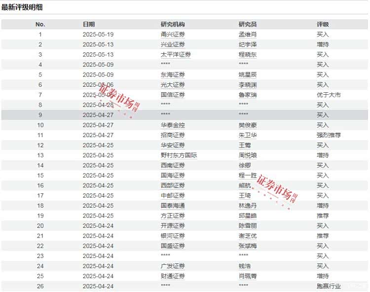 在4月24日温氏股份发布2024年年度报告后,温氏股份受到多家研究机构的关注和推荐。据Wind数据显示,4月24日起至5月19日有26家机构推荐买入或者增持温氏股份。