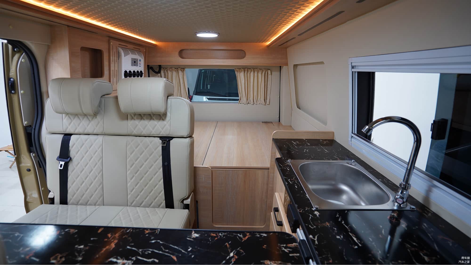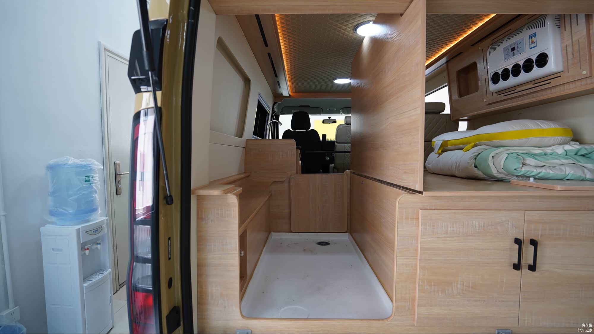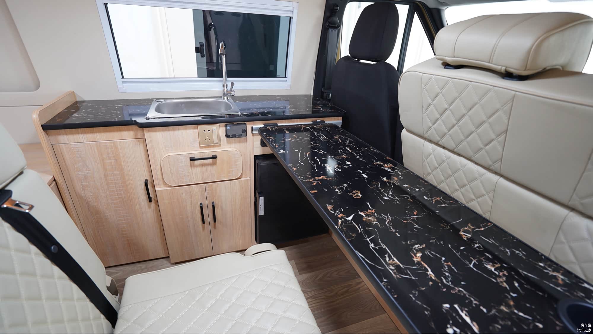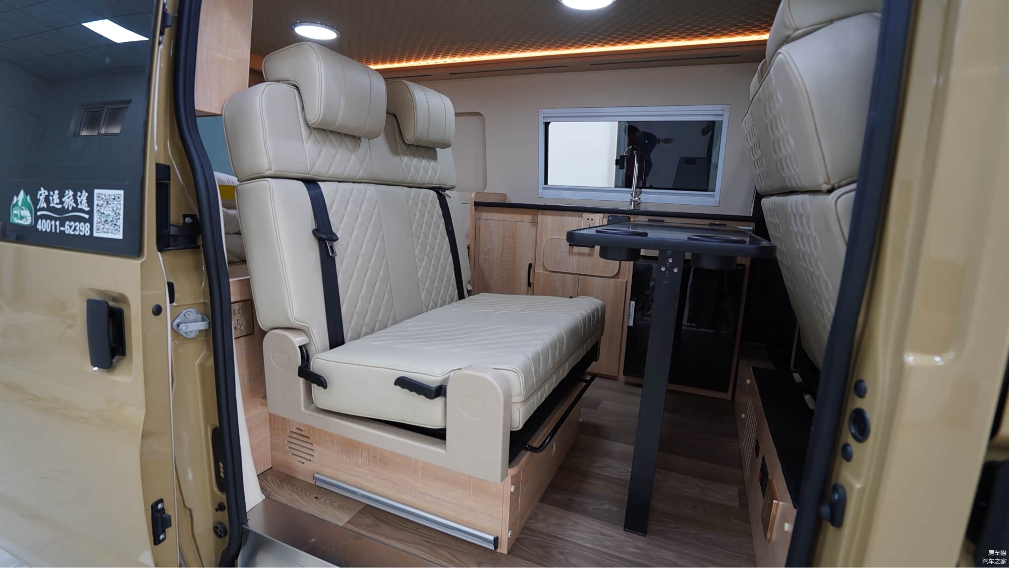 隐藏式卫浴空间:后横床暗藏玄机,打开档板后可秒变简易卫生间,满足户外基础洗漱需求,细节设计兼顾隐私与便利。