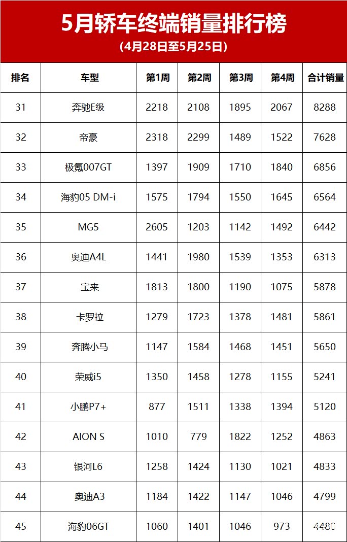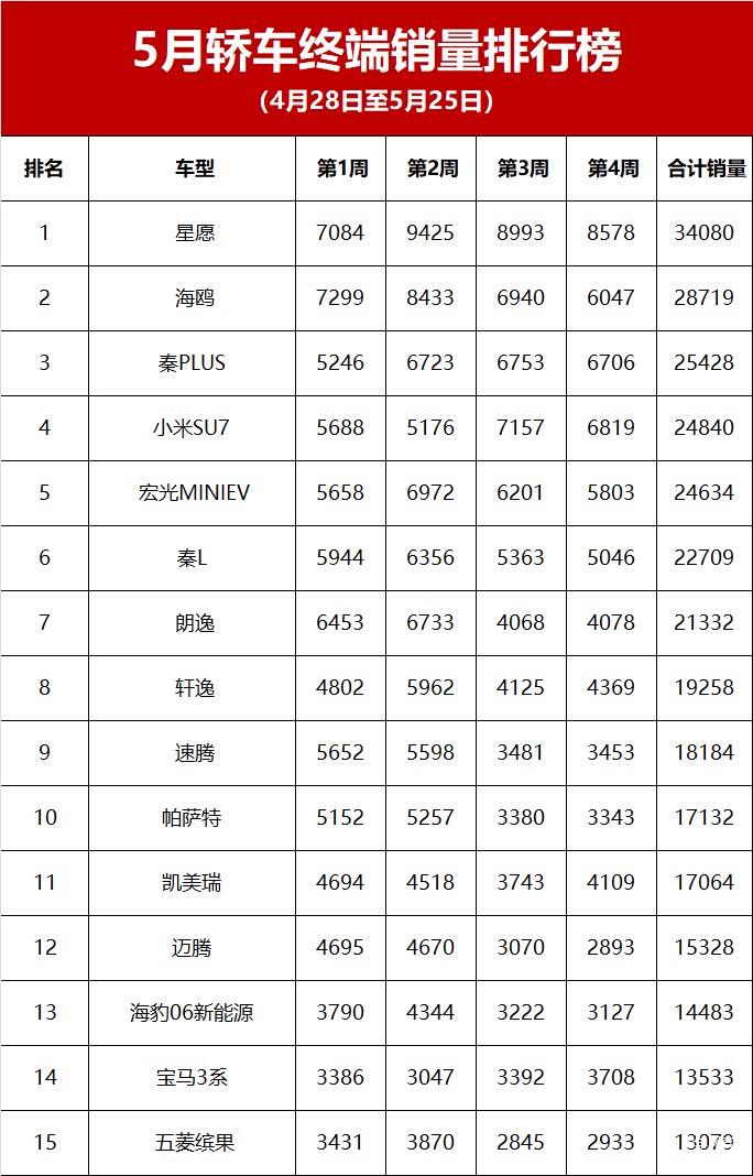 【2025年5月轿车终端销量排行榜】在当下汽车市场多元化发展的态势下,轿车领域的竞争也愈发激烈。从5月份(4月28日至5月25日期间)的终端销量数据来看,轿车市场呈现出一番独特的景象。新能源轿车持续发力,同时燃油轿车也在市场中占据着一定份额,展现出各自的优势。