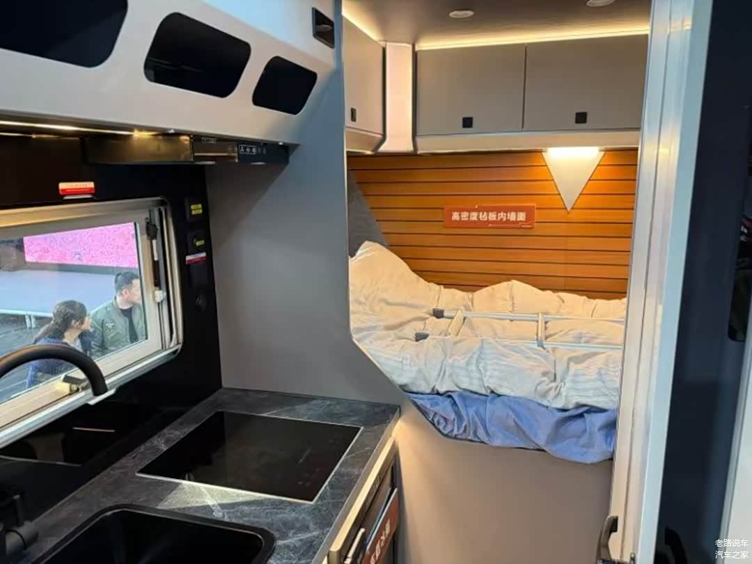 房车生活区则是设施齐全,应有尽有。舒适的床铺、宽敞的客厅和设备齐全的厨房全部安排到位。床铺宽大舒适,可为旅途劳累的人们提供良好的休息环境;客厅内的沙发配合升降桌也可变为一张床铺,便于家人朋友休息和娱乐;厨房配备了炉灶、水槽、冰箱等设施,满足日常生活的烹饪需求全都不在话下。
