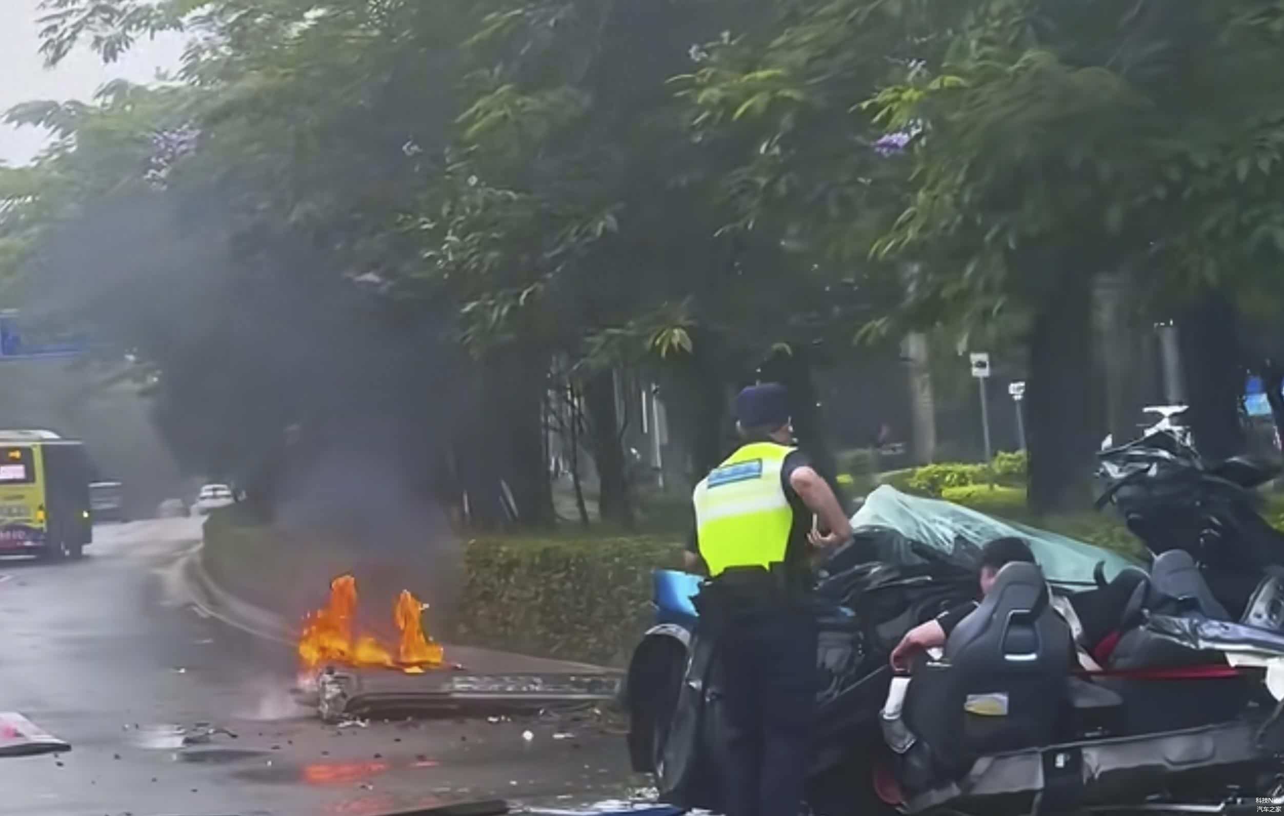 深圳市龙华区发生一起惊险的交通事故,一辆高性能电动轿跑 极氪001 FR(图片 | 参数 | 询价)在行驶中失控撞上路肩,导致车辆严重解体,电池包脱离车身并引发小火苗。所幸驾驶者被安全带固定在座椅上,事故后仍能与救援人员沟通,仅受轻微擦伤,堪称“奇迹生还”。