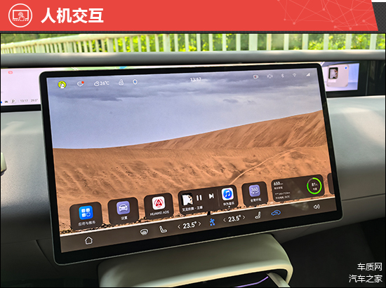 15.6英寸悬浮式中控屏搭载HarmonyOS系统,支持声纹识别、个性化场景编排、超级桌面与多端应用无缝流转等功能。系统运行流畅,并且操作方式与华为手机一致,逻辑清晰易上手。智能语音系统支持四区域唤醒识别、语音连续识别、可见即可说等功能,实测语音反应速度较快,对于模糊语义的识别也较为精准,实用性不错。