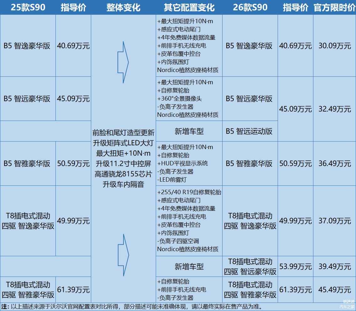 附:26款沃尔沃S90官方配置表(点击下图可放大观看):
