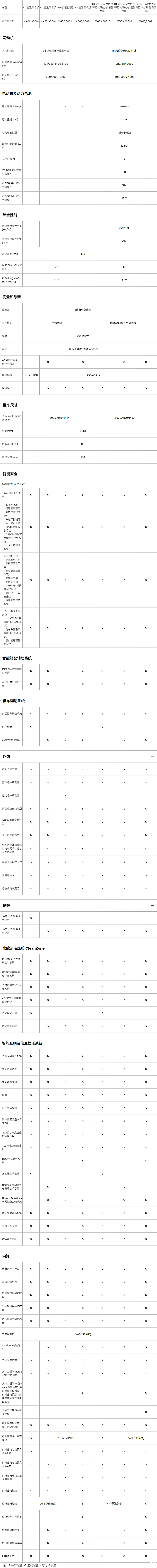 内饰配置:内部空间与现款几乎相同,原先“智逸版”采用的Sakelyx皮质座椅材质和“智远版”采用的Moritz座椅材质统一替换成Nordico植然皮质(生物基材料环保工艺)及菱形缝线纹路;中控触摸屏从现款的9英寸升级至清晰度、分辨率更高的11.2 英寸,且搭配新一代高通骁龙8155处理器及中控系统,操作的顺滑度及图像解析的流畅度都明显提高。此外,在前排中央扶手造型、水晶挡把、车门饰条及材质、音响盖板等细节处进行了微调,整体提升了车内高级感,并通过对隔音材质的升级提升了车内的静谧性。