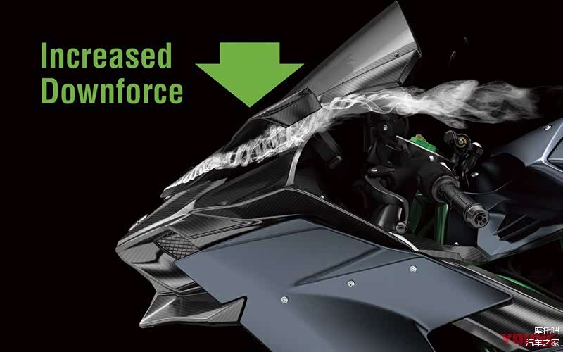 会如此设计也因为考量到定风翼在空气抵抗的先天弱势,所以这组2018年式样的定风翼在高速下能够在破风面下方产生气旋用以稳定车身,斜切面则是为了减低空气阻力而设计,那麽2018年式的KAWASAKI H2R的动态性能又会再向上提升,更令人兴奋的是,Young Machine甚至提到,KAWASAKI似乎也有意愿将定风翼科技下放到自家赛道王者ZX-10R身上,就让我们拭目以待吧!