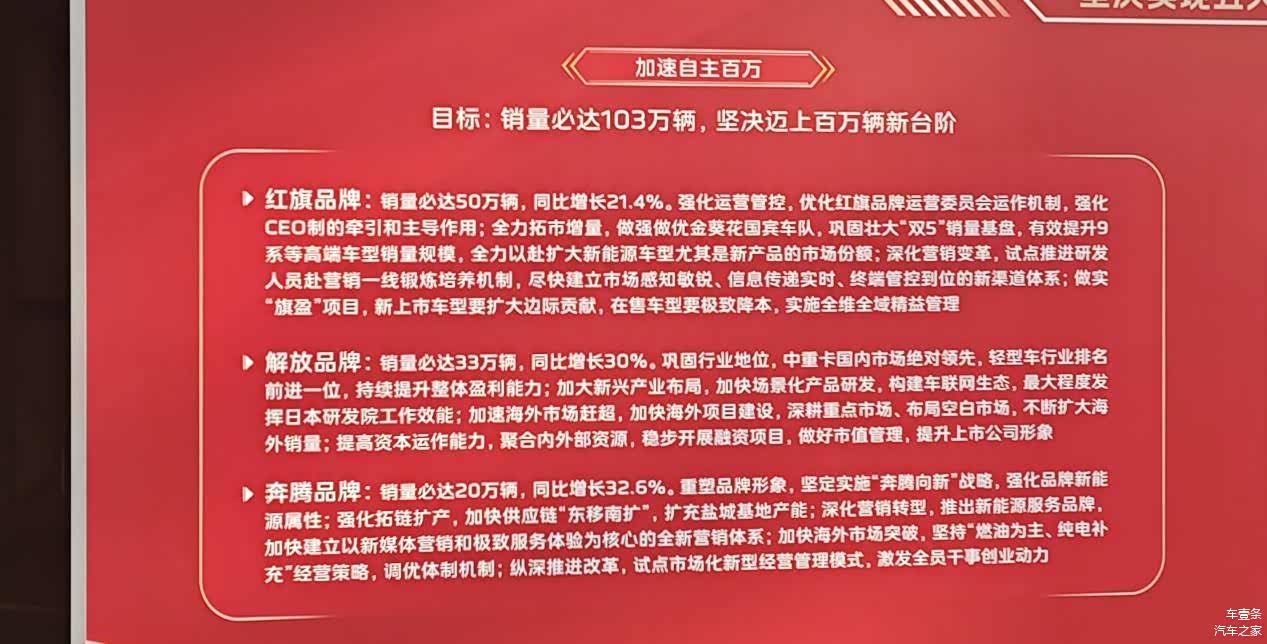 反映在用户可感知的豪华品质上,尤其是跟蔚小理等头部新势力玩家相比,红旗最新推出的“天工”系列仍有待精雕细琢。但对于笃定要加速转型的红旗品牌而言,开工没有回头箭,红旗必须在稳住燃油车市场的同时,全力锚定“新能源+智能化”赛道完成从产品、品牌到营销体系和创新机制的全面切换和转型。