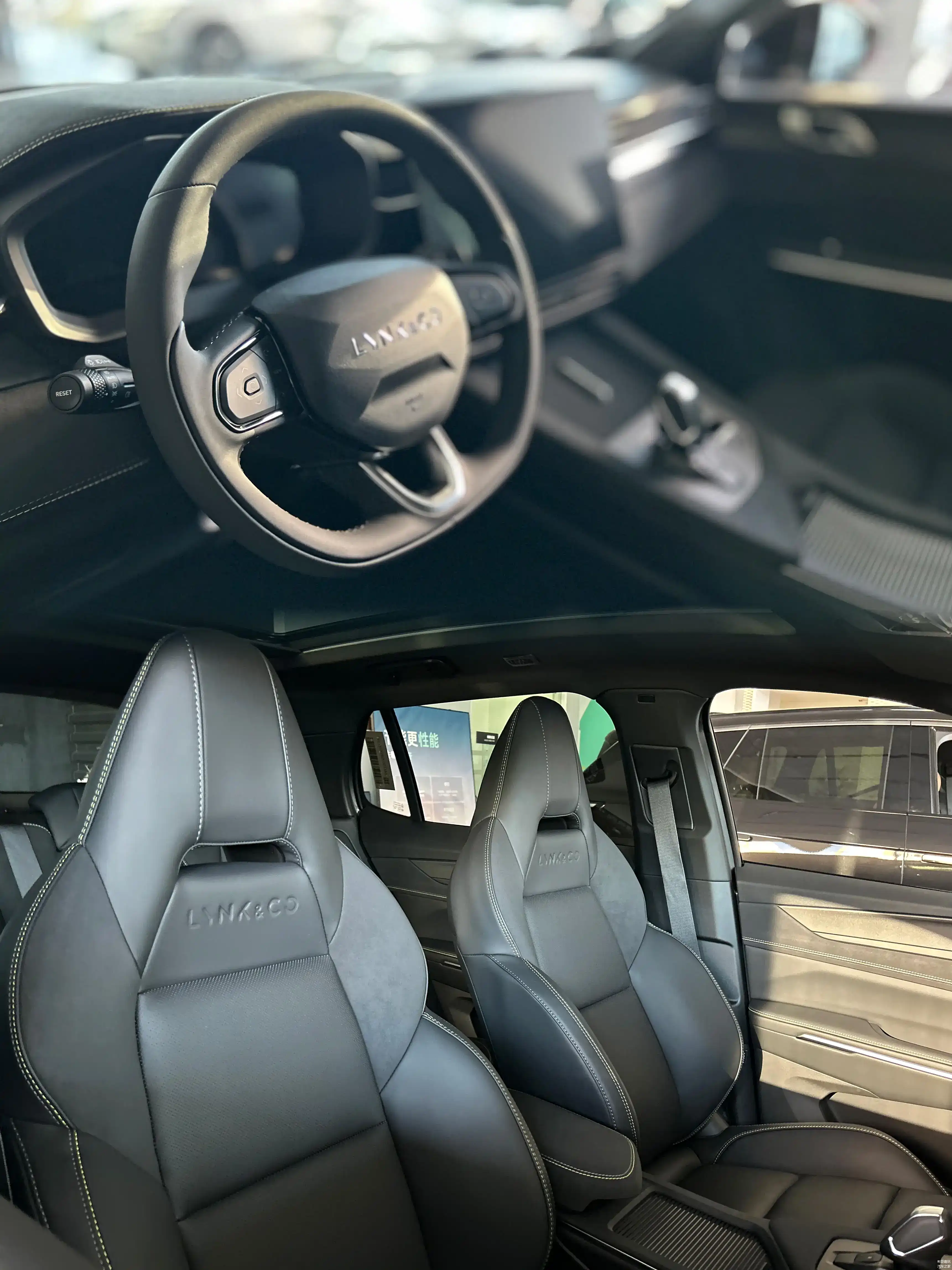 座舱内部,新车沿袭了以往的设计思路,通过细节升级提升了内在的高级感。内饰中加入了双色缝线,彰显精致品质,同时配备更符合人机工学的一体式运动座椅,为驾驶者提供更好的支撑与舒适性。在功能配置上,新车搭载全新的 15.4 英寸悬浮中控大屏,更高的悬浮位置便于驾驶员查看信息。此外,还配备了全新 LYNK OS N 1.4 智能车机系统,内存升级至 16G,系统响应更迅速、运行更流畅,多任务切换也更加轻松自如。