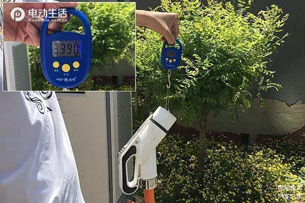 星星充电充电桩还需要优化的就是充电桩重量,因为无论哪种功率的快充电桩,枪头都特别重。我们用测量了一下,基本都在6斤左右,如果要想将充电枪放回原位,抬高之后重量有可能会升高到8斤。