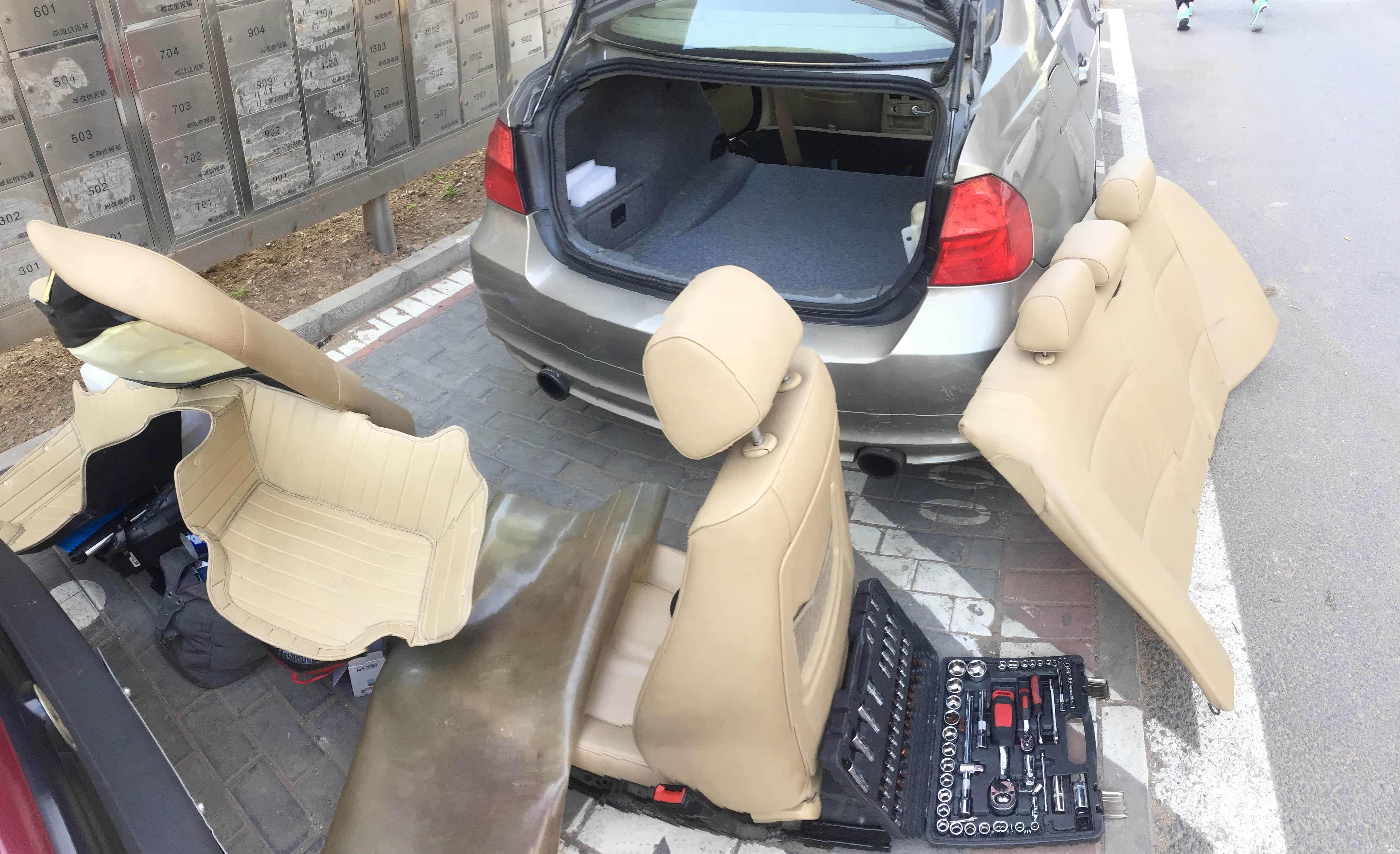 拆座椅无疑是最简单见效的减重方式。一套工具,一处阴凉,一个小时时间。一个标准成年人的重量就轻松减掉了。