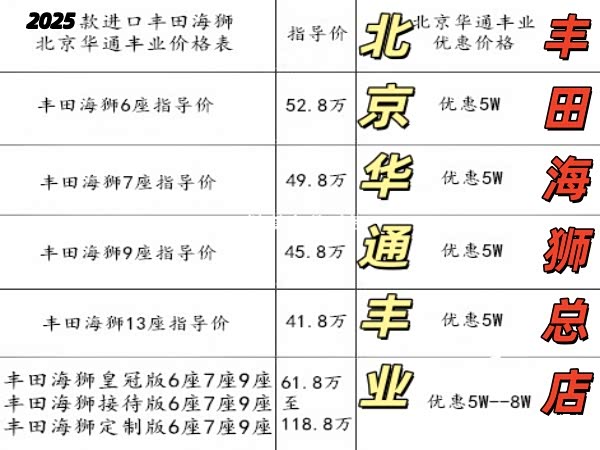原装进口丰田海狮蓝牌6座-7座-8座-9座价格报价_豪华商务房车_现车销售_可售全国,华通丰业丰田海狮10座-11座版-12座-13座黄牌,更有可上蓝牌照的丰田海狮6座、丰田海狮7座、丰田海狮8座、丰田海狮9座,专业改装航空座椅,北京现车最低价格。感兴趣的朋友不妨关注一下
