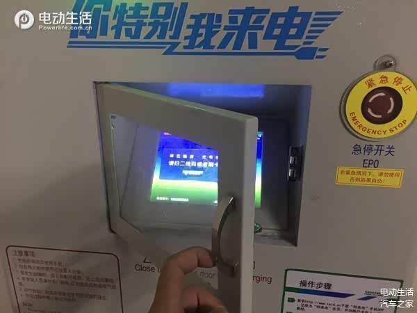 特来电还有一种“方盒子”样式的充电桩,样式和其他品牌差不多,与我们刚刚评测的电桩相比多了一个屏幕,屏幕外面还多了一个“大门”