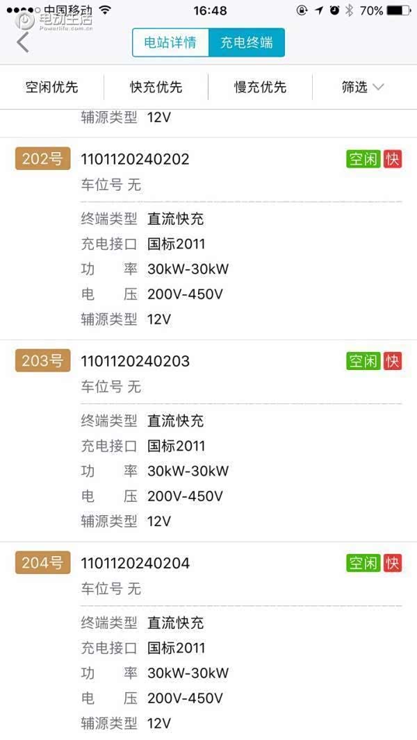 根据亲身实测,在使用特来电充电桩的时候看人品,大小功率难以分辨,赶上哪个就用哪个,来回更换的时间加在一起可能还没有一直拿低功率电桩充电快,万一所有电桩功率都那么低可就真耽误事了。