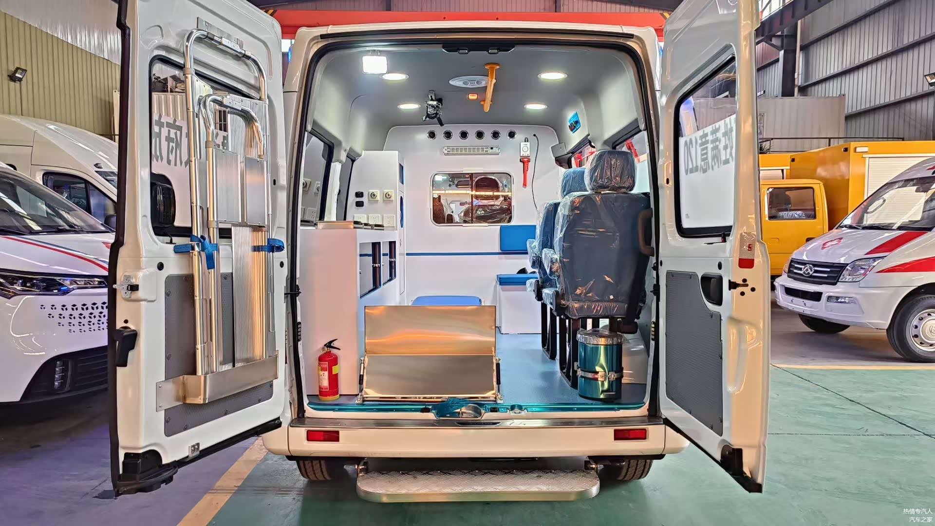 前置前驱 6挡手动/6挡自动,2.0排量125马力柴油发动机,遥控钥匙,原厂空调,前排电动门窗,顶部米高警灯,后舱空调,换气扇,紫外线消毒灯,原车内饰顶,顶部LED照明灯,氧气瓶,供养系统,担架,输液架等。