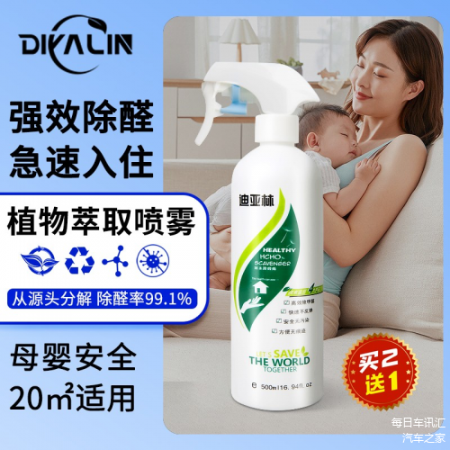 优势:主动分解甲醛: 迪亚林等除醛喷雾通常含有能分解甲醛的活性成分,不是简单的掩盖气味,而是通过与甲醛发生反应,将其转化为无害物质(如水和二氧化碳),从源头减少甲醛危害。作用相对快速: 相比单纯通风,喷雾能更快地作用于释放到空气中的甲醛分子。操作方便: 喷雾形式易于操作,可以覆盖到车内的各个角落。