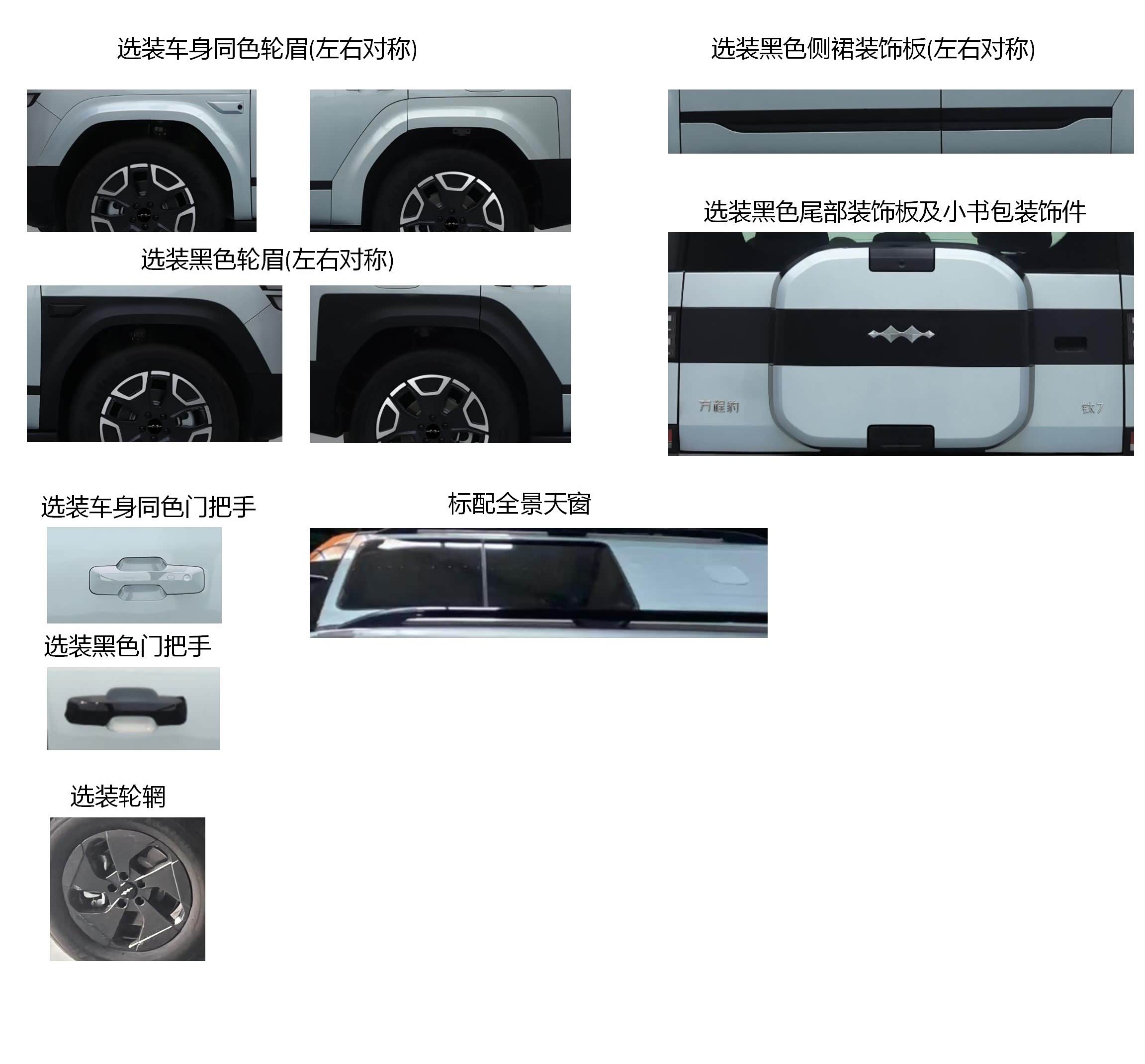 具体来看,外观方面前脸部分采用了方正大气的风格,确实要更像豹5一些,当然封闭式车鼻向钛3看齐,中央是方程豹车标,左右两侧独特的双层大灯组,在比亚迪集团是第1次出现,有着不错的辨识度,前保险杠部分突出的护板,独立的雾灯组,多层次的格栅等元素显示了轻越野的定位,也亮明了有内燃机的身份。