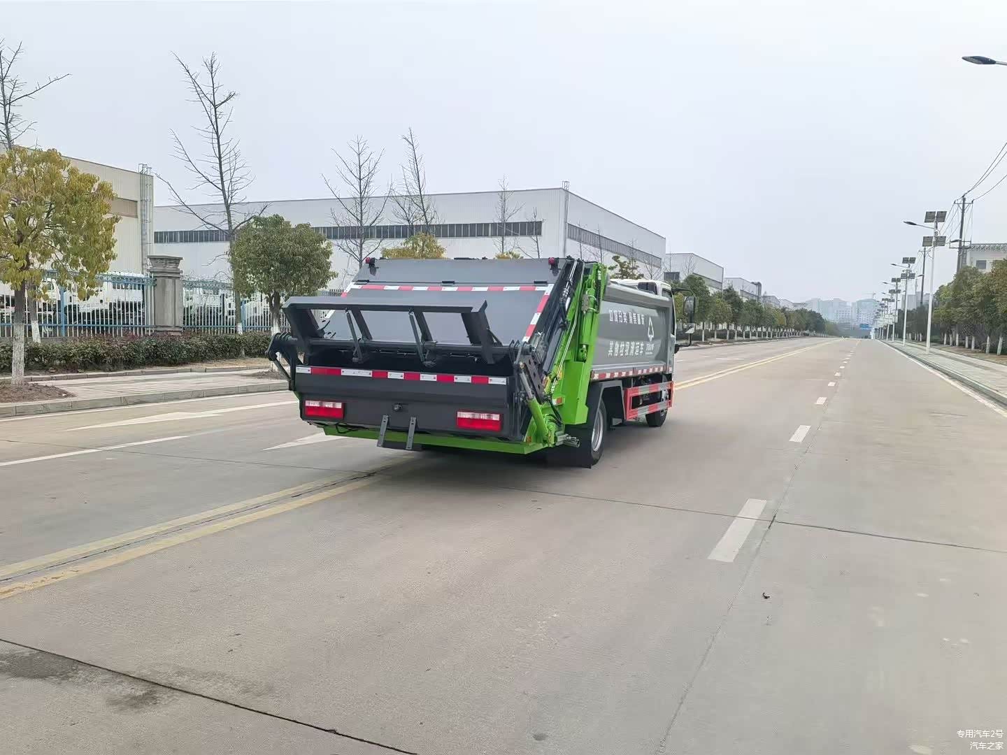 - 翻转机构:标配翻转架可挂 2 个 240 升国标垃圾桶,还可加装侧污水箱和防尘盖。