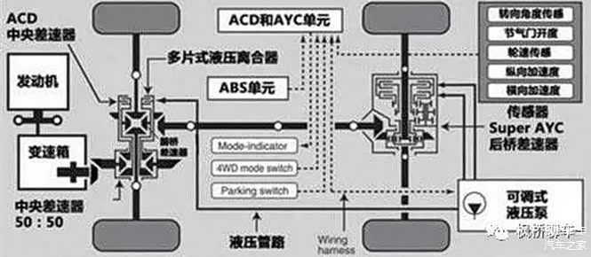 AYC、ACD、ASC、ABS共同组成了三菱的S-AWC(Super All Wheel Control)超级全轮控制系统,其中AYC、ACD是S-AWC里的核心组成部分。