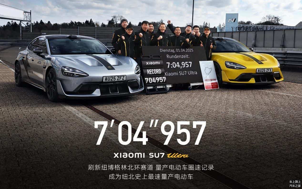 「7分04秒957」,量产版的 小米SU7 Ultra(图片 | 参数 | 询价)刷新了纪录,成为纽北史上最速量产电动车。这个纪录的刷出时间,是2025年4月1日。