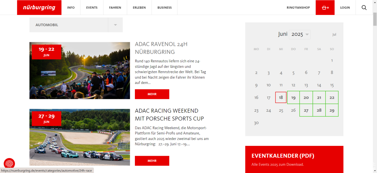 如今,纽博格林举行的最受关注的赛事,是1970年由ACDC发起的「纽博格林24小时耐力赛」,此外还会举行各种杯赛、挑战赛、嘉年华。除了举行比赛的日子,厂商组织可通过预约进行包场测试。