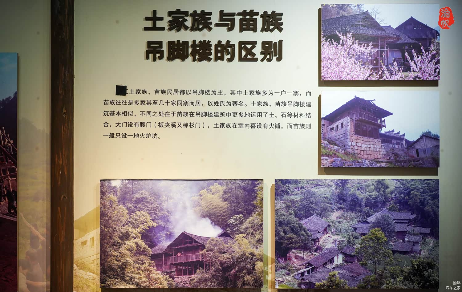 黔江民俗馆是一个全木结构的四合院建筑,室内顶面用西兰卡普图案彩绘装点,使其外形和里面的装饰极具土家特色。整个展厅由历史篇、工艺篇、服饰篇、民居篇、生产生活篇、民俗文化篇、婚嫁篇等单元汇聚而成,以图片、文字、实物、交互式媒体等多种形式,向人们系统的展示了黔江民俗文化。