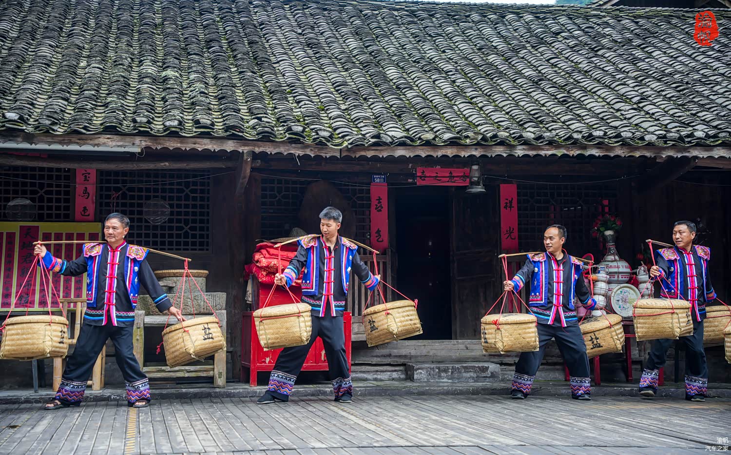 土家十三寨很大,里面值得逛的地方也很多,有限的时候难以一一玩遍,取舍之间,新建村的民俗表演是一定不能错过的,未进寨门,便先闻《迎客鼓号》的激昂,身着盛装的土家汉子擂响牛皮大鼓,鼓点如骤雨砸在青石板上。随后还有《盐客调》,老盐工们挑着盐担,用苍凉的调子唱出茶马古道的艰辛。待到婚嫁表演,幺妹们头戴银饰,在《哭嫁歌》的旋律中泪眼婆娑,令人印象深刻。不过最妙的是演出结束时的摆手舞,村民邀请大家一起围圈同舞,木鼓声中,大家都成为土家文化的体验者与传承者。
