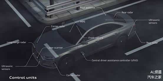 首先看到的是全新奥迪 A8的传感器配置。