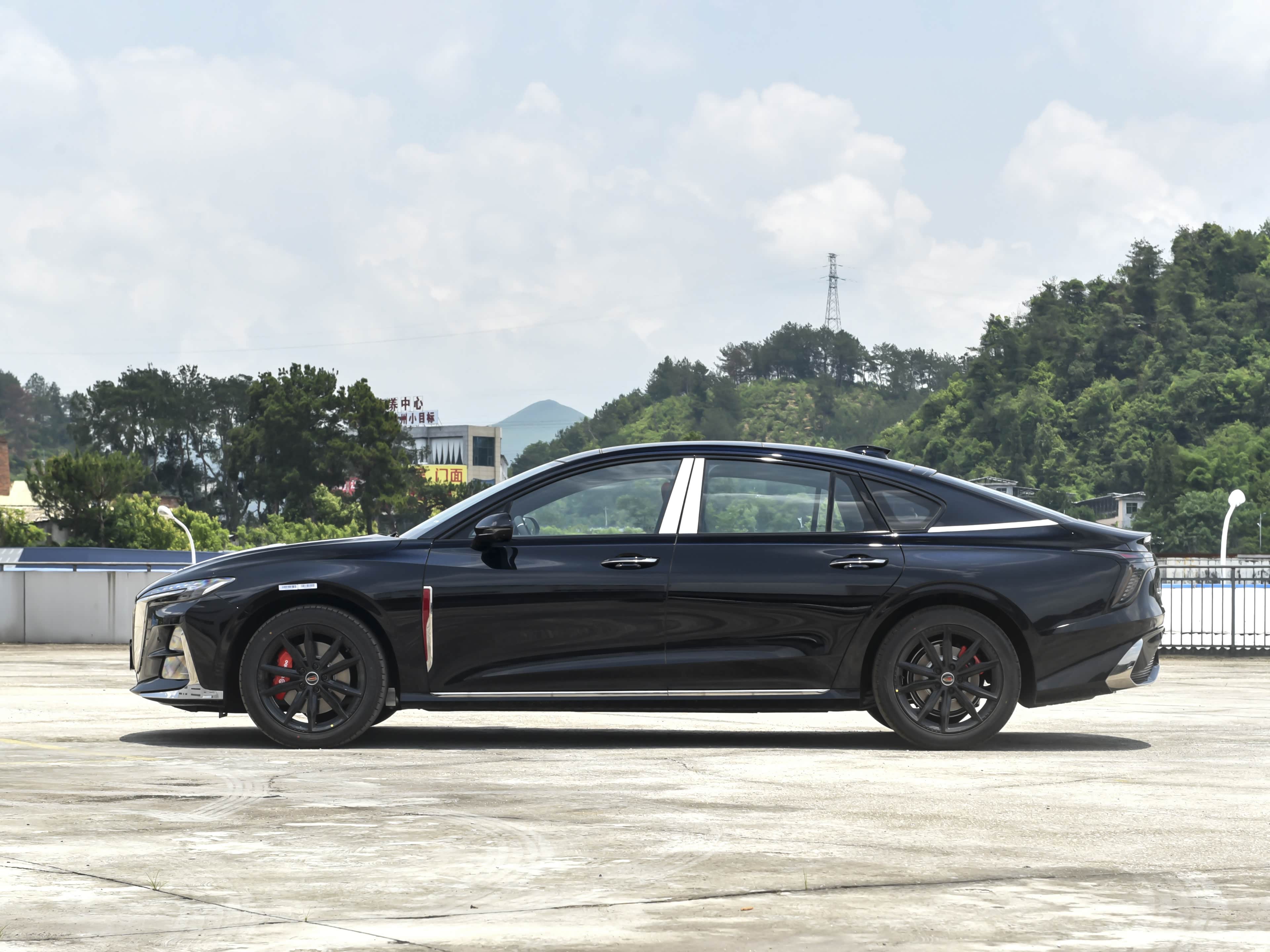 车身侧面采用溜背式造型,配备18英寸轮毂,并可选装红色布雷博卡钳。车身尺寸方面,新车长宽高分别为4990/1880/1455毫米,轴距达2920毫米,提供魅夜黑、量子银灰、高山莹白+黑色悬浮车顶、海沫绿+黑色悬浮车顶、量子银灰哑光等外观颜色。