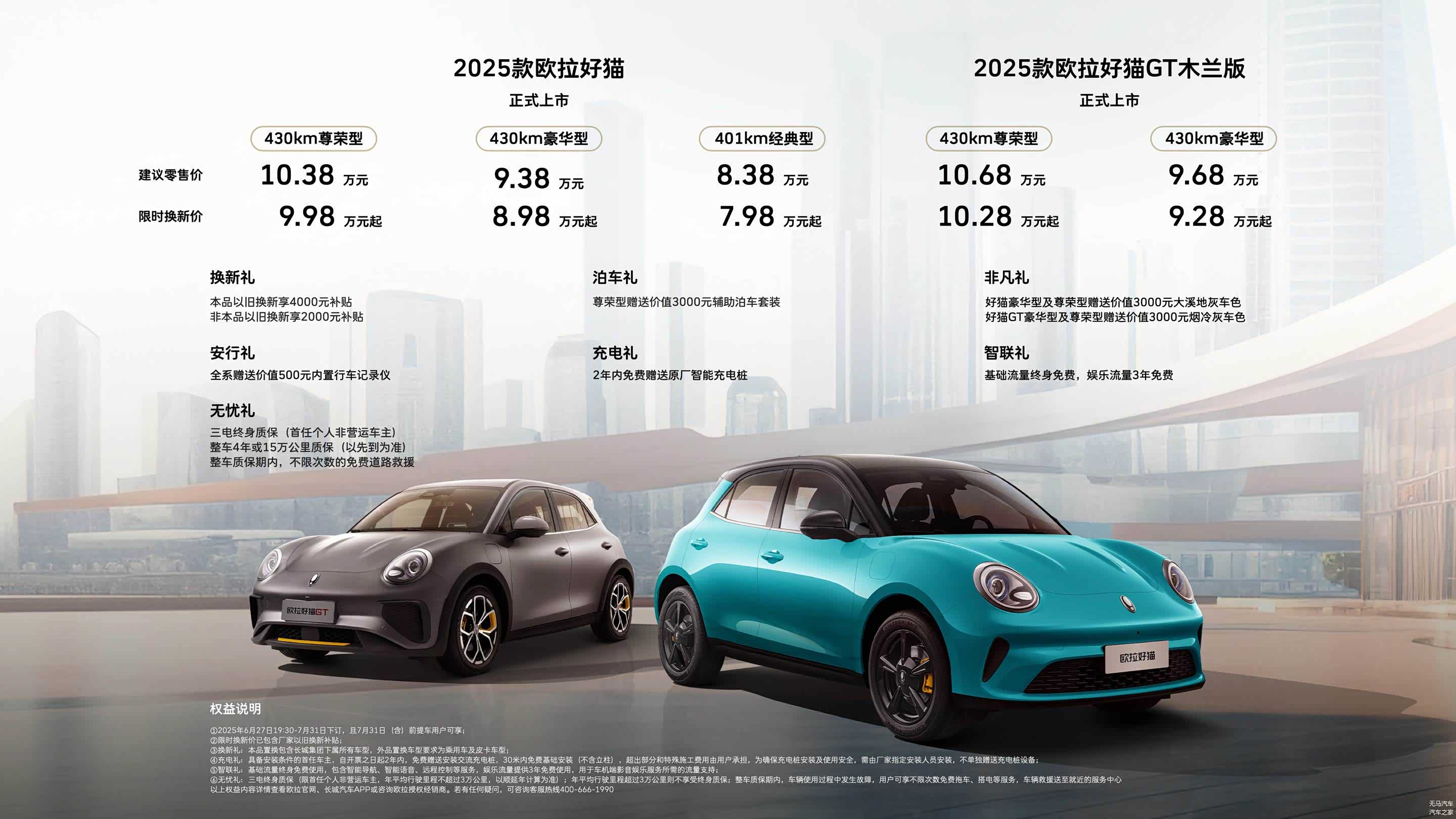 星愿霸榜,海鸥屈居,从国内轿车的销量排行榜来看,小型纯电车的“吸金”能力依旧在线,眼看着纯电代步车再度霸榜,作为最早耕耘小型纯电车市场的中国品牌之一,欧拉又怎么会“按兵不动”:就在06月27日,2025款 欧拉好猫(图片 | 参数 | 询价)/好猫GT木兰版正式上市,前者推出3款车型,售价为8.38-10.38万元,限时换新价为7.98-9.98万;后者推出2款车型,售价为9.68万和10.68万,限时换新价为9.28万和10.28万。