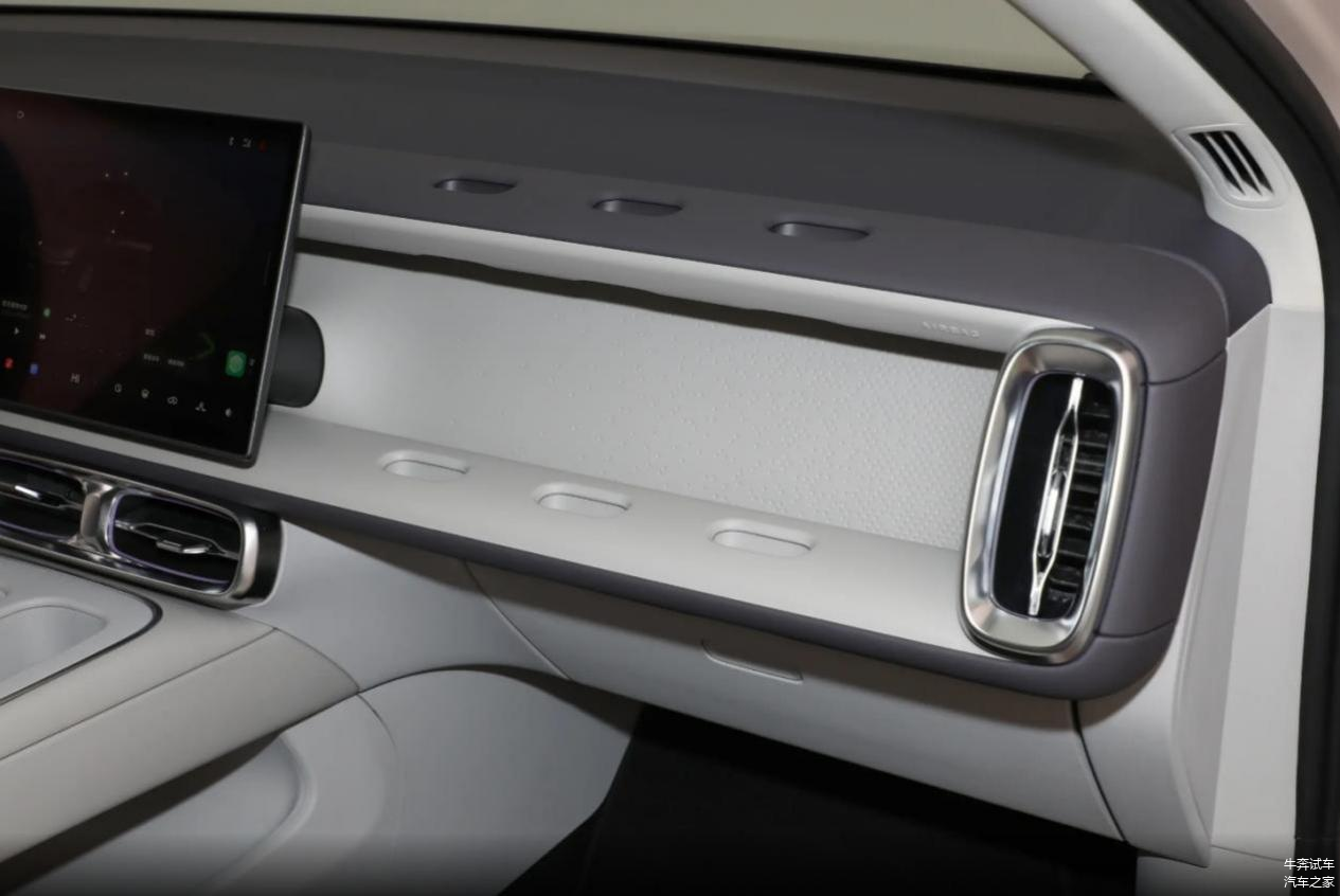 而且它的内饰还融入了一些新颖且实用的设计,比如6 个“魔术拓展孔”和1个矩形凹槽结构,你可以自由组合折叠桌板,让车内瞬间成为早八化妆间或是打工人小饭堂,抑或是变成一个应急工位,满足在外办公时的需求等等,此外,这里还支持组合手机支架或是储物盒、水杯架等配件,娱乐、收纳等各种需求都可以满足,方便且实用。