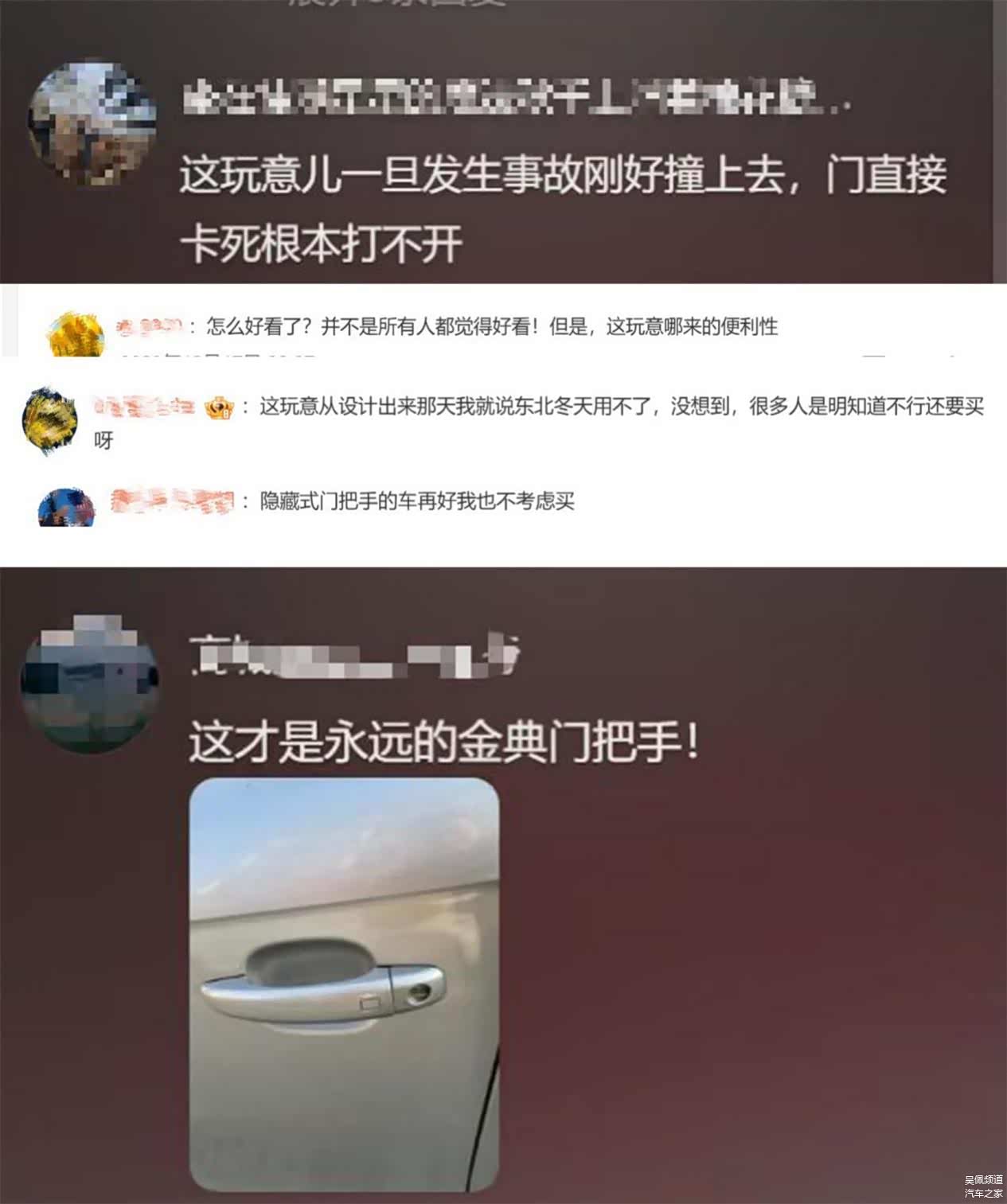 其次,部分隐藏式门把手在冬天会被冻住无法弹出,或者断电后无法从外面开门的隐患。但即便是传统门把手,也存在碰撞之后打不开车门的可能。所以门把手长什么样,跟是否安全,没法直接划等号,关键要看安全冗余有没有设计得足够充分。