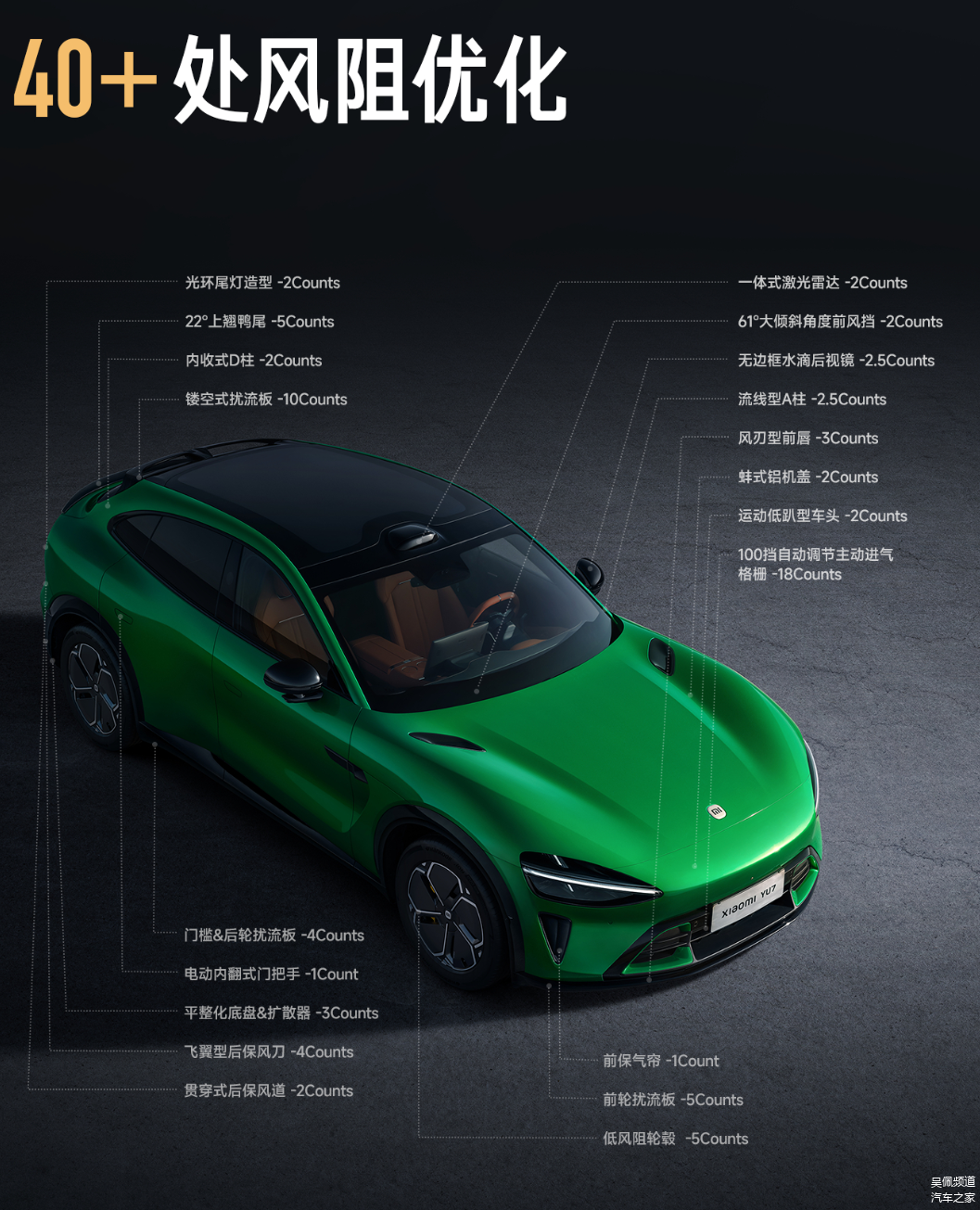 而且还能降低风阻,虽然1个Count的减少,大概能增加1-3km的续航,相比起低风阻轮毂和各种风道优化,减得并不多,但Cd 0.245就是这里抠一点,那里抠一点综合得来的结果,而优化续航带来的好处,就是标准版的纯电续航能到835km(CLTC)。