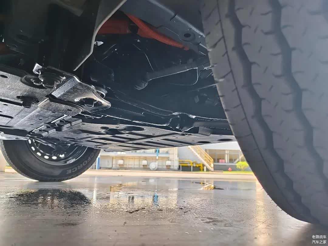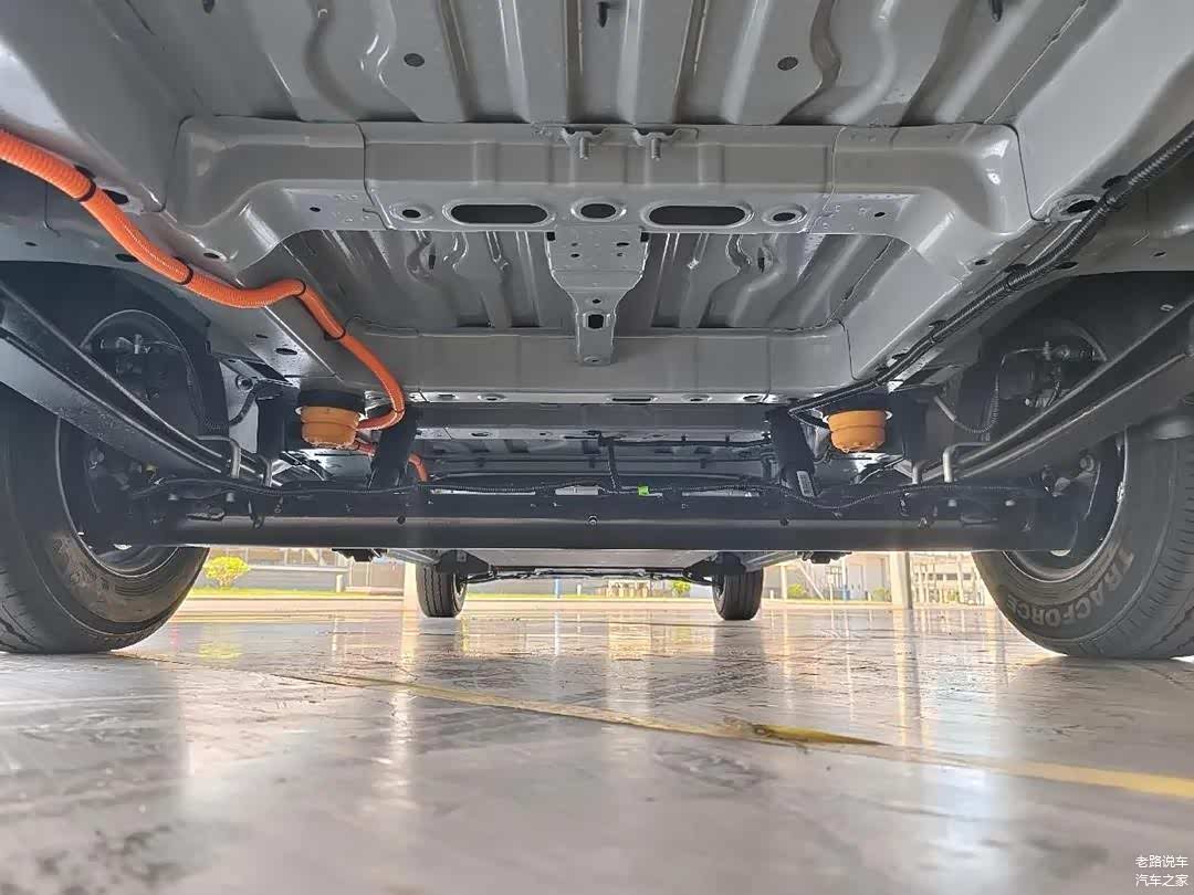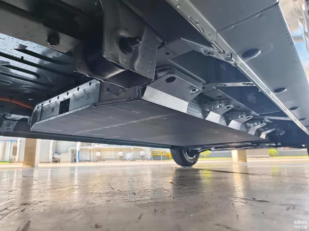 前轮由高集成多合一电驱系统驱动,峰值功率90kW,峰值扭矩220N·m,同时支持多模式能量回收。底盘配有护板,保护电驱系统免受磕碰损伤。