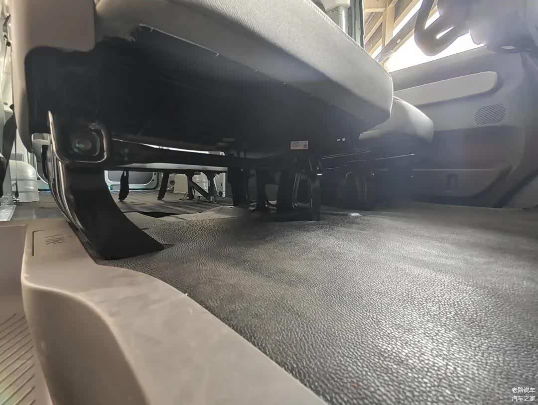 驾驶区纯平地板贯通设计,人员可以轻松在主副驾间移动。副驾座椅下方预留了储物空间,将空间利用到极致。