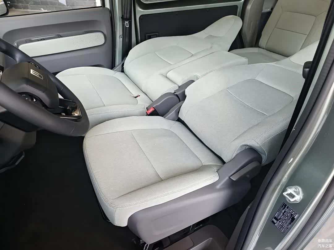 得益于怀挡、电子手刹配置,主副驾座椅中间没有任何部件,贯通设计让人员可以在这里躺卧。副驾中间靠背可以向前翻折,形成扶手和杯架。