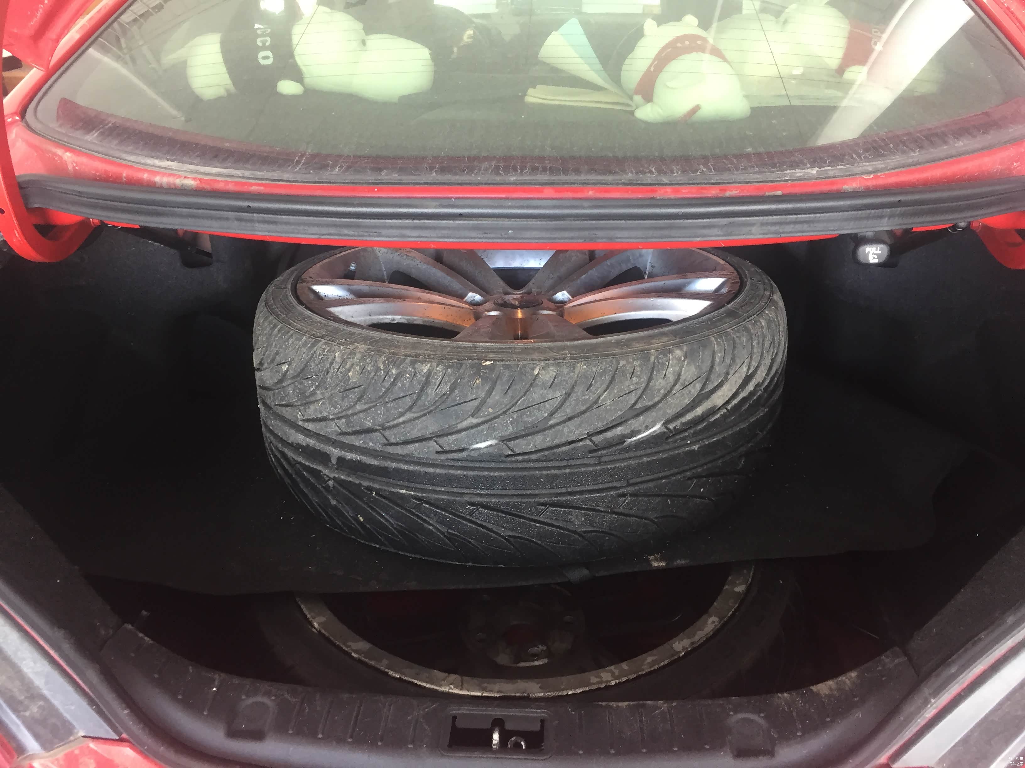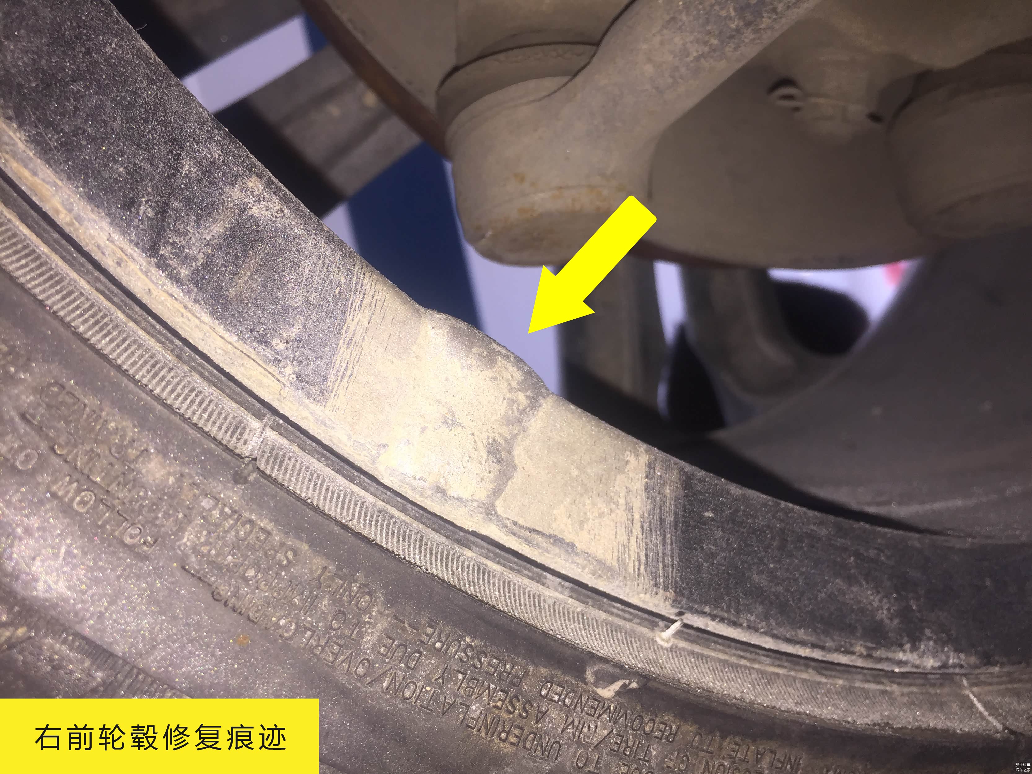 能在上面两张图中清楚地看到摩擦痕迹,但为了能正常过户也只能先将就着,等过户完在更换回改装胎也不会对车辆有损伤(车辆过户的位置离我们很近)。
