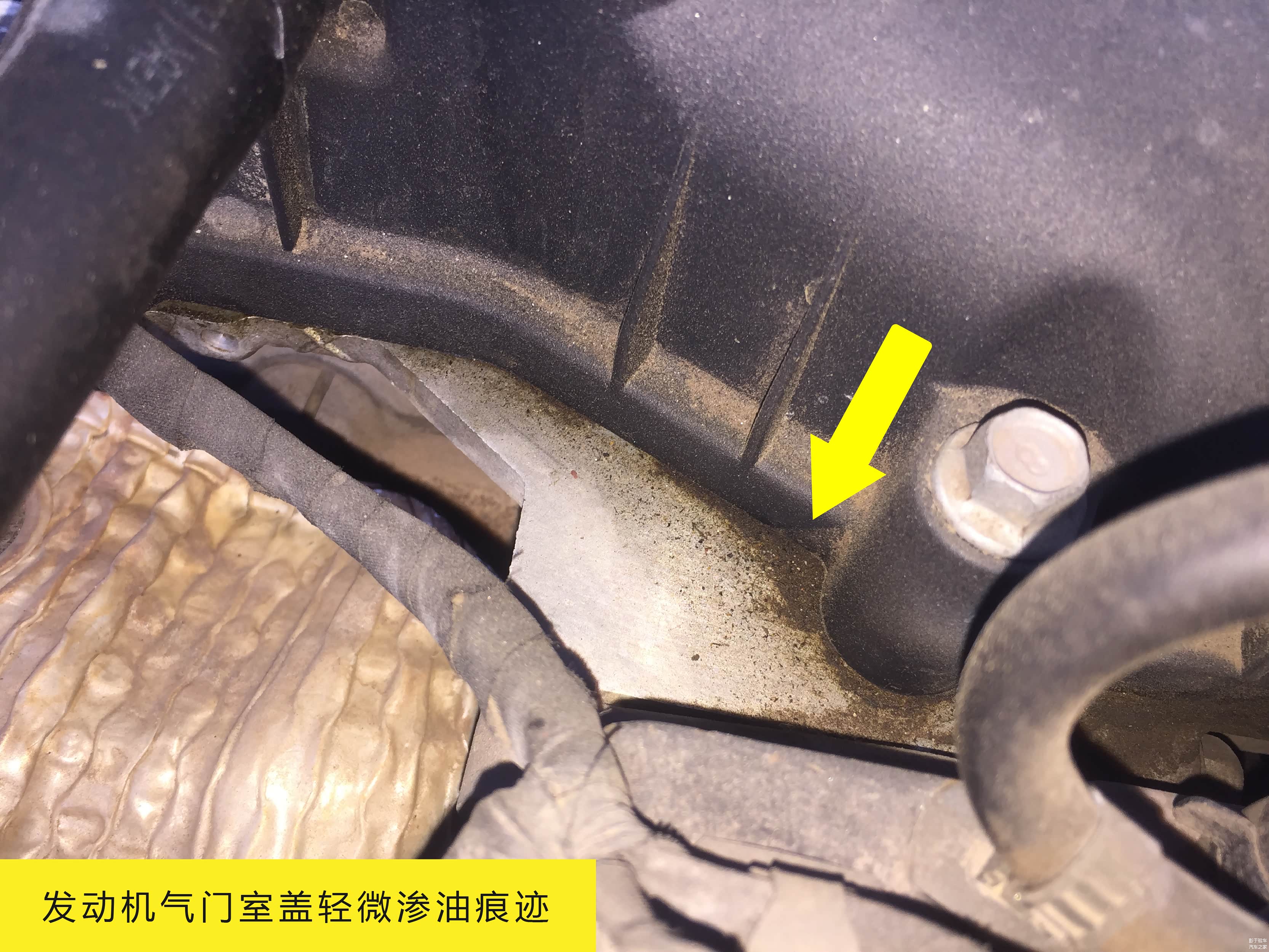 首先看到车辆的气门室盖轻微渗油痕迹,基本90%的老车都会出现这种情况。