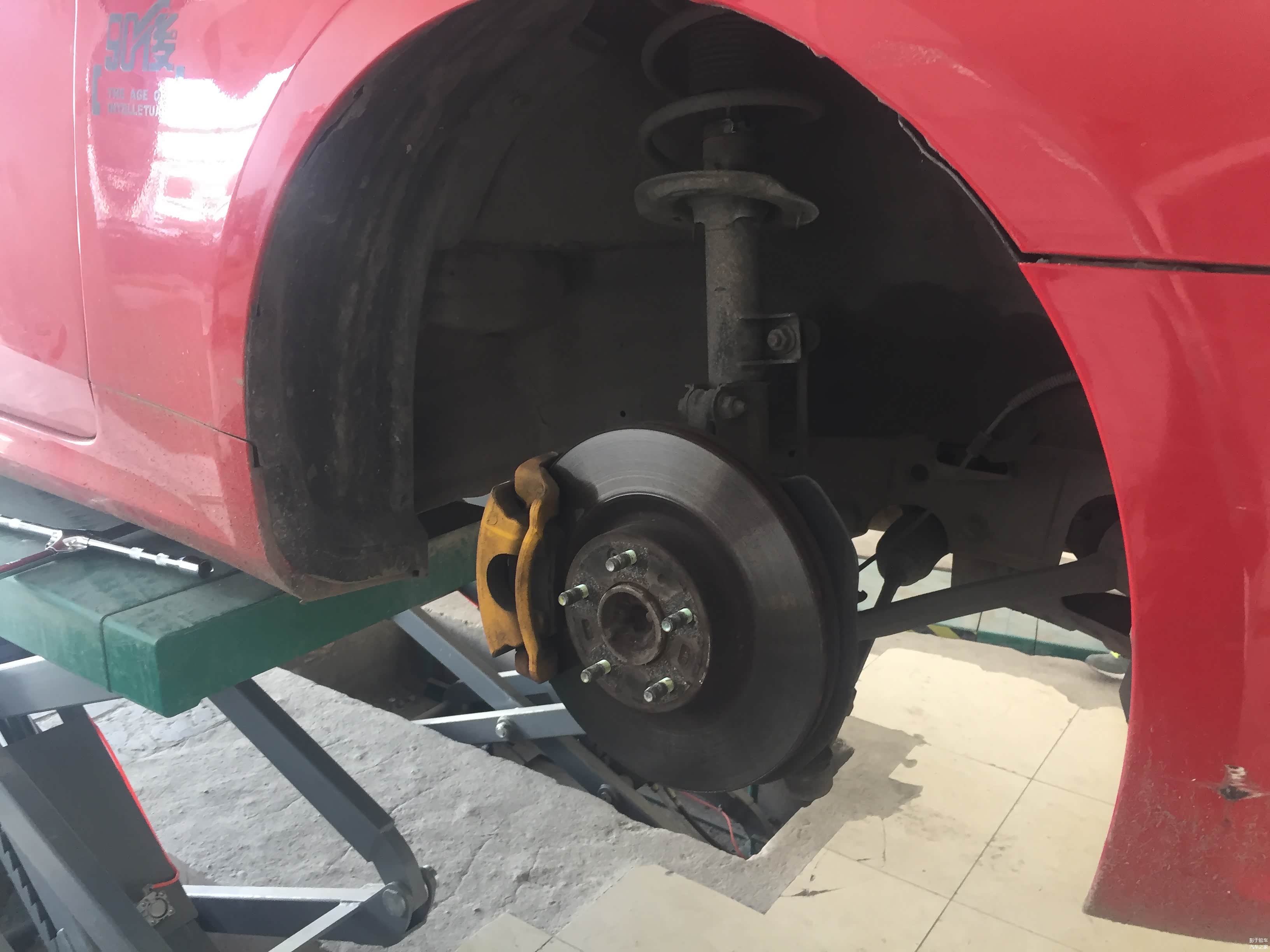 在刚开始与买卖双方见面时,客户就问我能不能帮忙换下轮胎(过户用),对于这种小事情我们当然乐意帮忙。所以借着抬升车辆的工夫就拆卸了轮毂进行更换,而安上的轮毂当时就发现了几处问题。