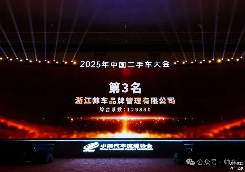 7月3日,2025年中国二手车行业发展论坛在重庆召开,帅车集团荣获“2025年度中国汽车流通行业二手车经销商百强排行榜”前三。帅车力哥严选(杭州)新能源科技有限公司获得“2025年度中国汽车流通行业新能源二手车经销商50强”第7名,标志着帅车在传统二手车与新能源二手车领域都展现出了强劲的增长潜力。