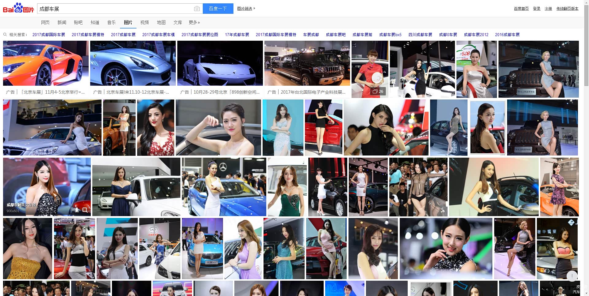 但你反过来再看一看我去过的那次成都车展。我感觉国产车能占1/3就不错了。另外我写文章的时候,在百度地图上搜了一下成都车展,你看上图都出来的是啥,简直满屏幕的各种车模基本没有几辆车,更别说国产车了。