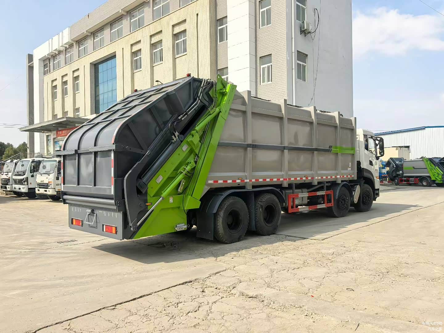 - 尾部翻转机构:尾部翻转机构为全密封斗,可有效防止垃圾在运输过程中泄漏和散落,进一步提高车辆的环保性能。
