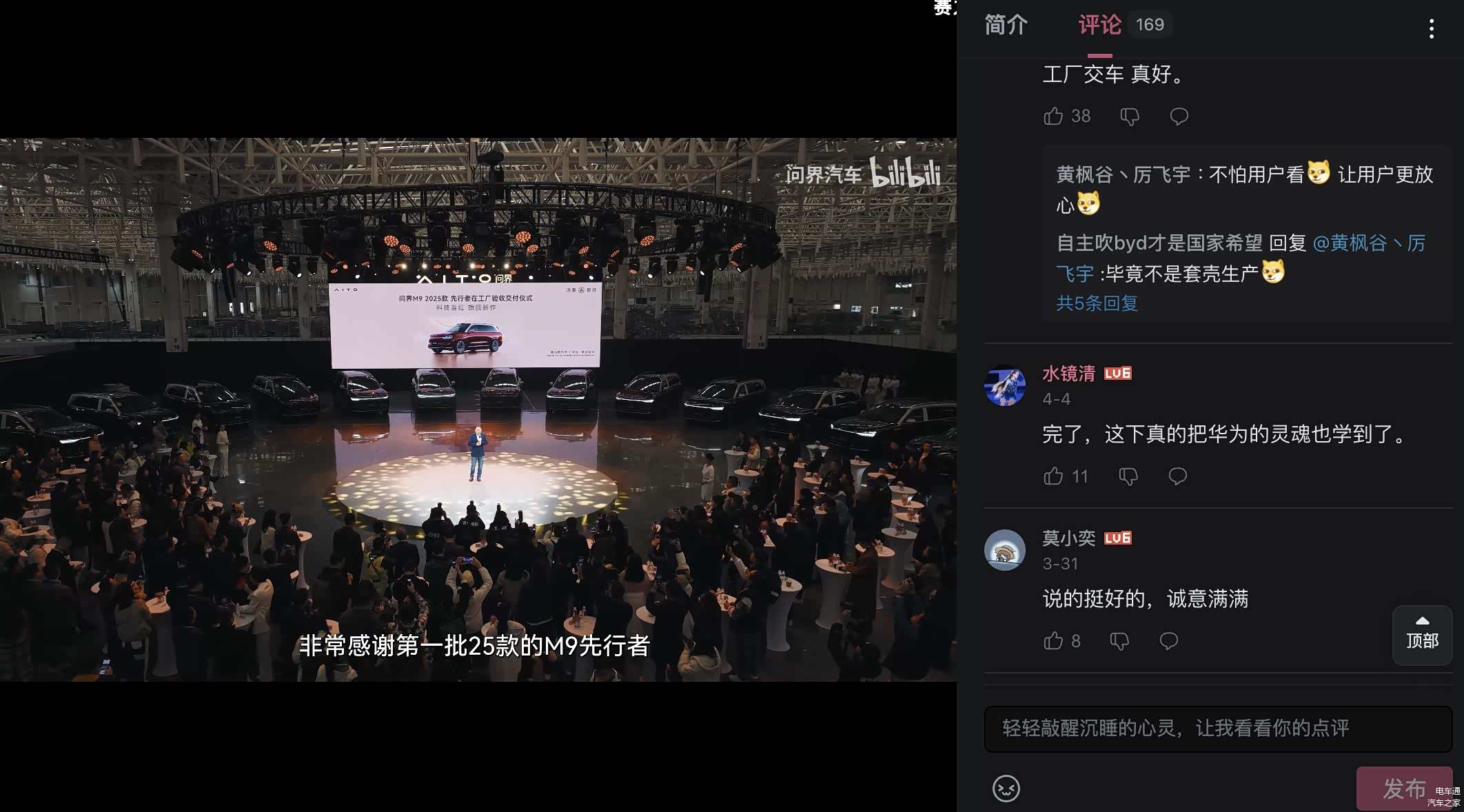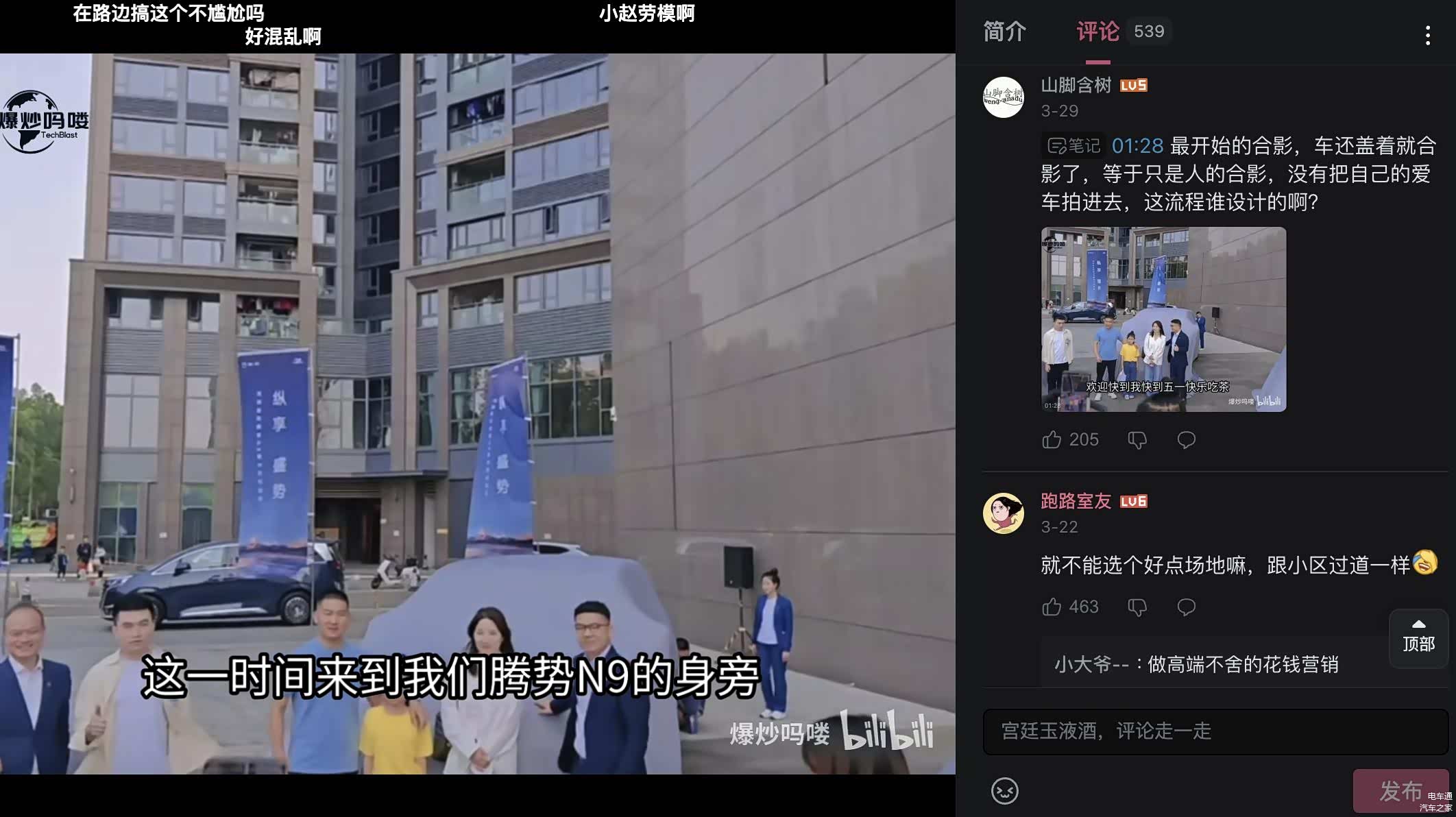 今年3月,腾势新车N9上市交付,与其他车企相同,腾势也举行了首批车主交付仪式。当参加活动的车主将交付现场拍摄的视频发到B站后,网友们却纷纷表示,腾势真的不懂该如何提供情绪价值。