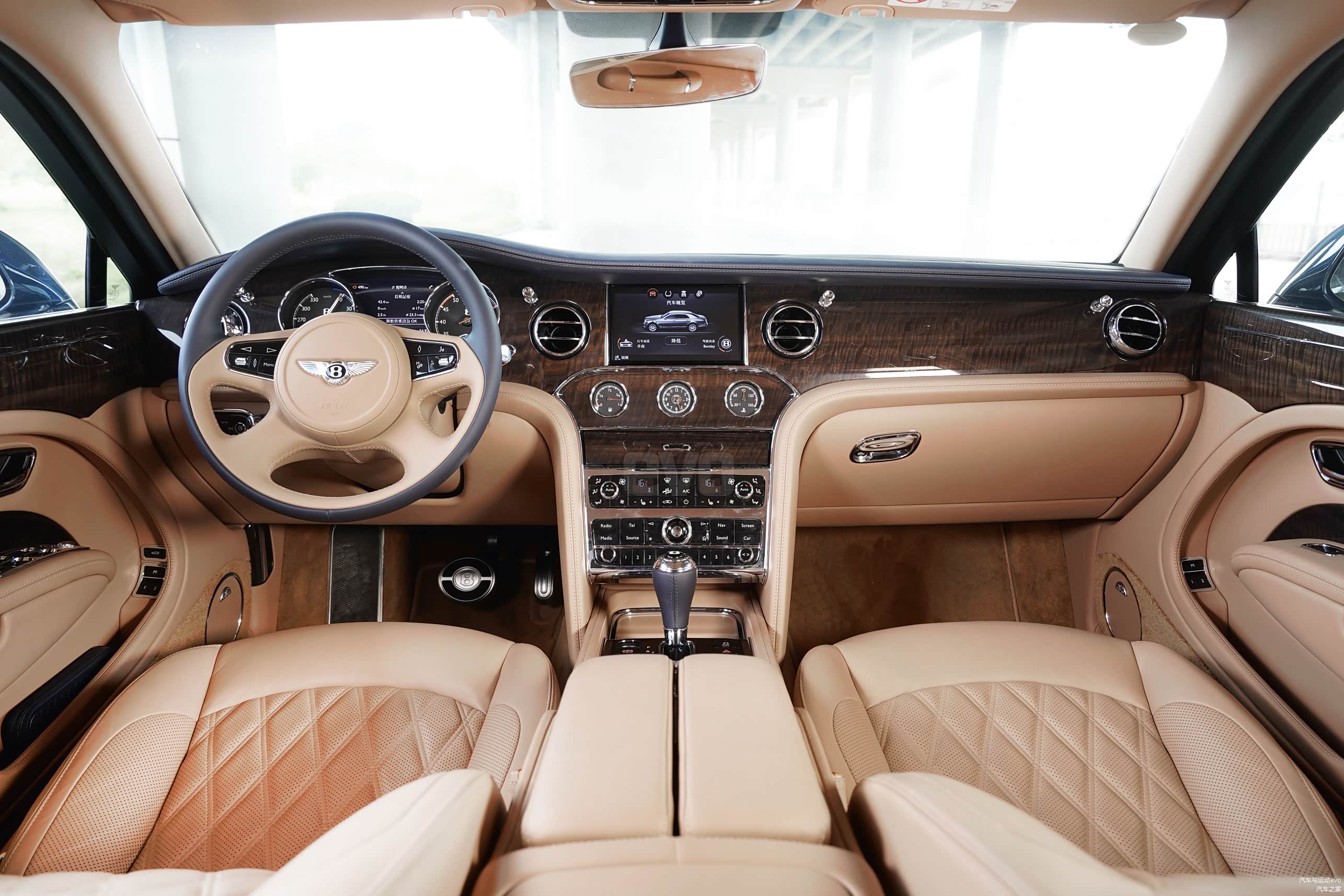 与此前驾驶的宾利慕尚极致版以Speed为主题的特点不同,宾利慕尚EWB版的主题就是Luxury,大面积的实木材饰板的应用,让我刚一坐进车内就体会到了如同走进皇宫般的奢华感受。同时,作为目前宾利的顶级型号,宾利慕尚EWB有别于飞驰、欧陆等车型,在部分细节上依然沿用最为传统及精湛的制造工艺。就拿内饰木料来说,工匠们用双手对一整块木料进行取材,然后经过长时间打磨后,按照顺序及位置对一辆车的整体内饰进行镶嵌,最后呈现在我们眼前的,无论光泽度、颜色和纹理在一辆车内都表现得相当自然。当然,这样做的结果也就是没有一辆宾利是完全相同的。而车内的镀铬按键、饰条等,都应用了不锈钢材质,而非其他车型所用的合金镀铬工艺,在质感的呈现上更加出色。