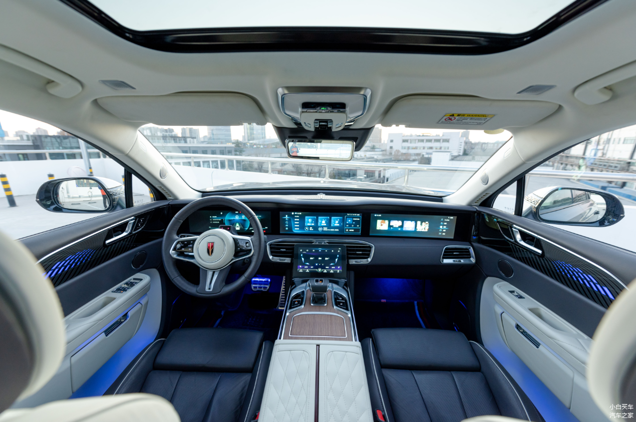 当然,作为红旗的旗舰SUV,E-HS9还是有一些可取之处,例如内饰设计能体现出中式豪华的感觉,中控台的贯穿式大连屏看起来挺大气。当然这台车还有全系双电机四驱、高配车型也有空气悬架和座椅通风加热按摩。但也不能掩饰这款车在智能座舱软件、驾驶辅助软硬件方面确实已经跟不上当下主流水准,也难怪这款车基本没啥销量。
