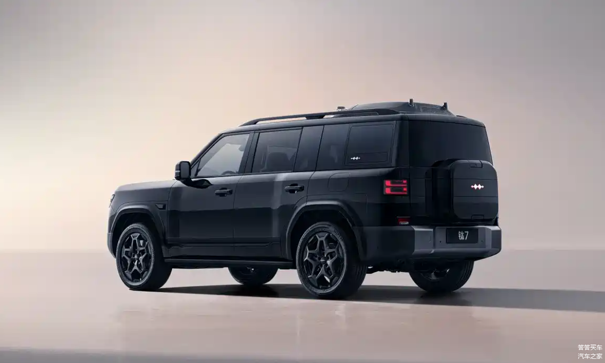 外观方面,新车的日行灯为双L造型,前包围造型厚重,展现出硬派越野气质。新车的星型轮毂采用全黑配色,尾部的外挂“小书包”是储物空间,尾灯内部的双L造型与前大灯相呼应,后保险杠也十分厚重。新车车顶搭载了灵鸢智能车载无人机系统,车载无人机可在车速25km/h时起降,无人机具备随动跟拍功能、全向主动避障功能、一键生成航拍大片等功能。