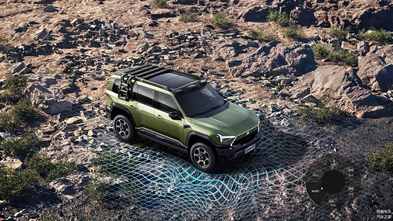 猛士智能越野全地形系统,让越野更轻松。M817 含 1 种 AUTO、2 种公路、6 种全地形共 9 种驾驶模式,覆盖全路况;智能 E 锁精准分配动力,单轮可脱困;3.5m 小半径原地掉头,野外易脱困;越野座舱、6D IMU 感知、低速辅助简化操作,对新手友好;专家模式供专业玩家自定义。