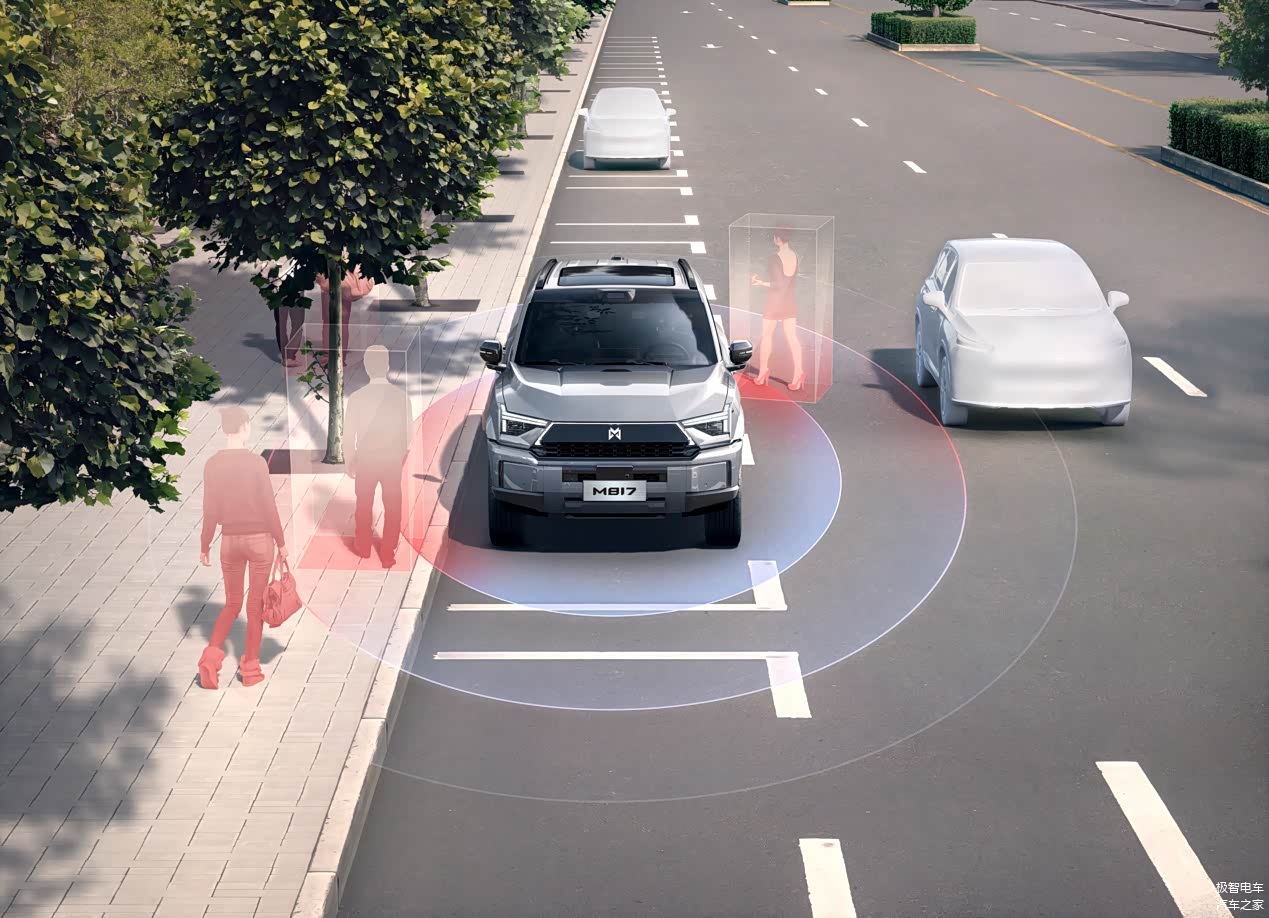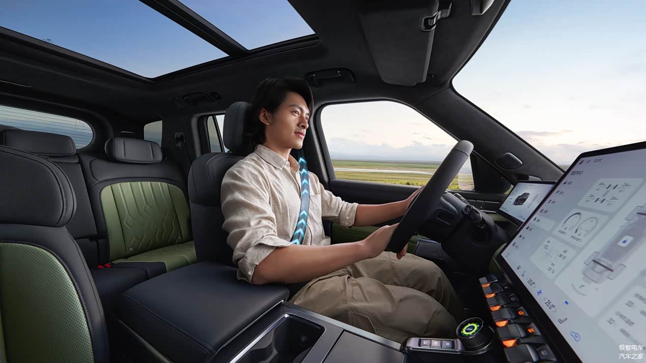 猛士 M817 还以多项安全黑科技全方位护行:智能红外夜视系统 120 米内精准识别车辆、行人及动物,消除极端环境视野盲区;极端状况下全场景主动安全带预紧,降低乘员伤害;1700 毫米超长保压安全气帘,30 秒长效防护;自动断油、下高压等设计,避免紧急情况次生风险。