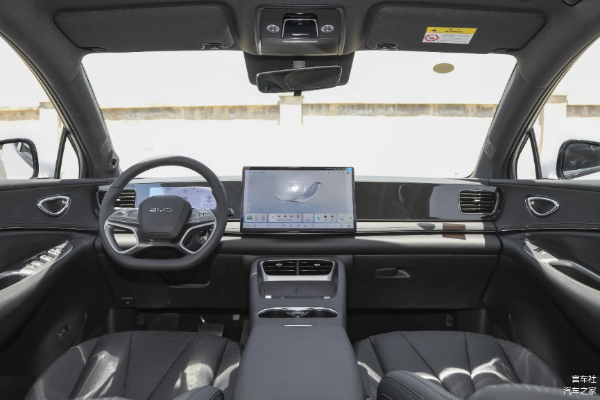 至于内饰,可能是长这个样子,和我们常见的比亚迪内饰不太一样,这套设计看起来更有科技感